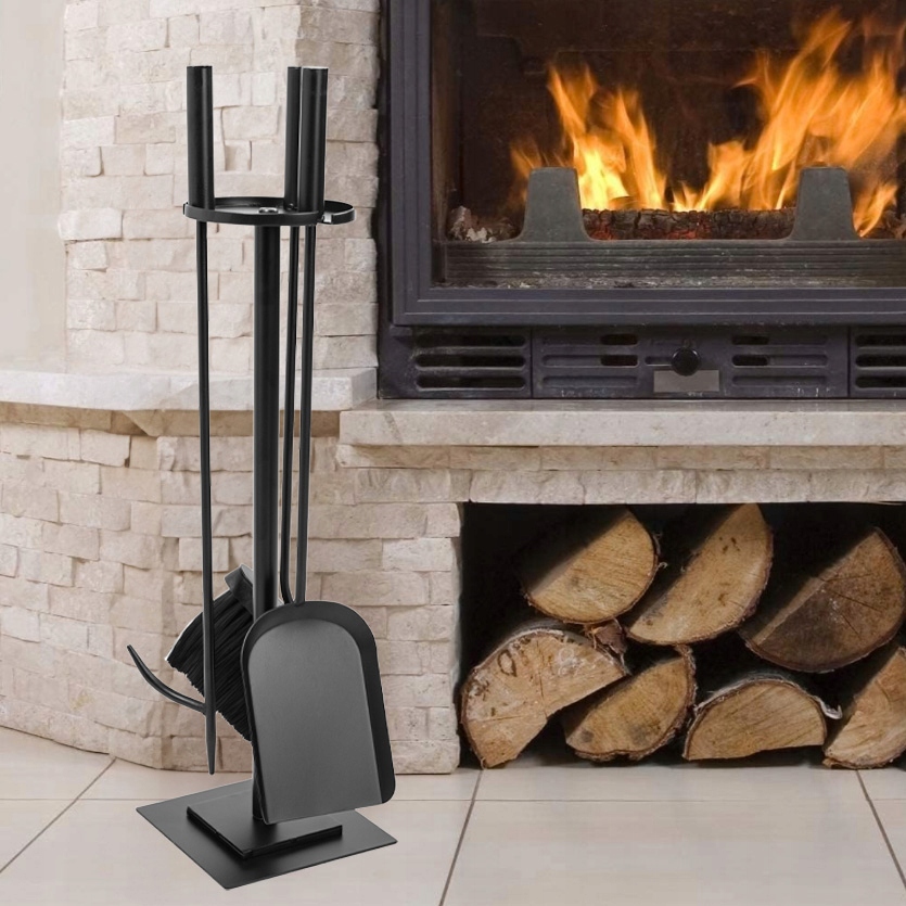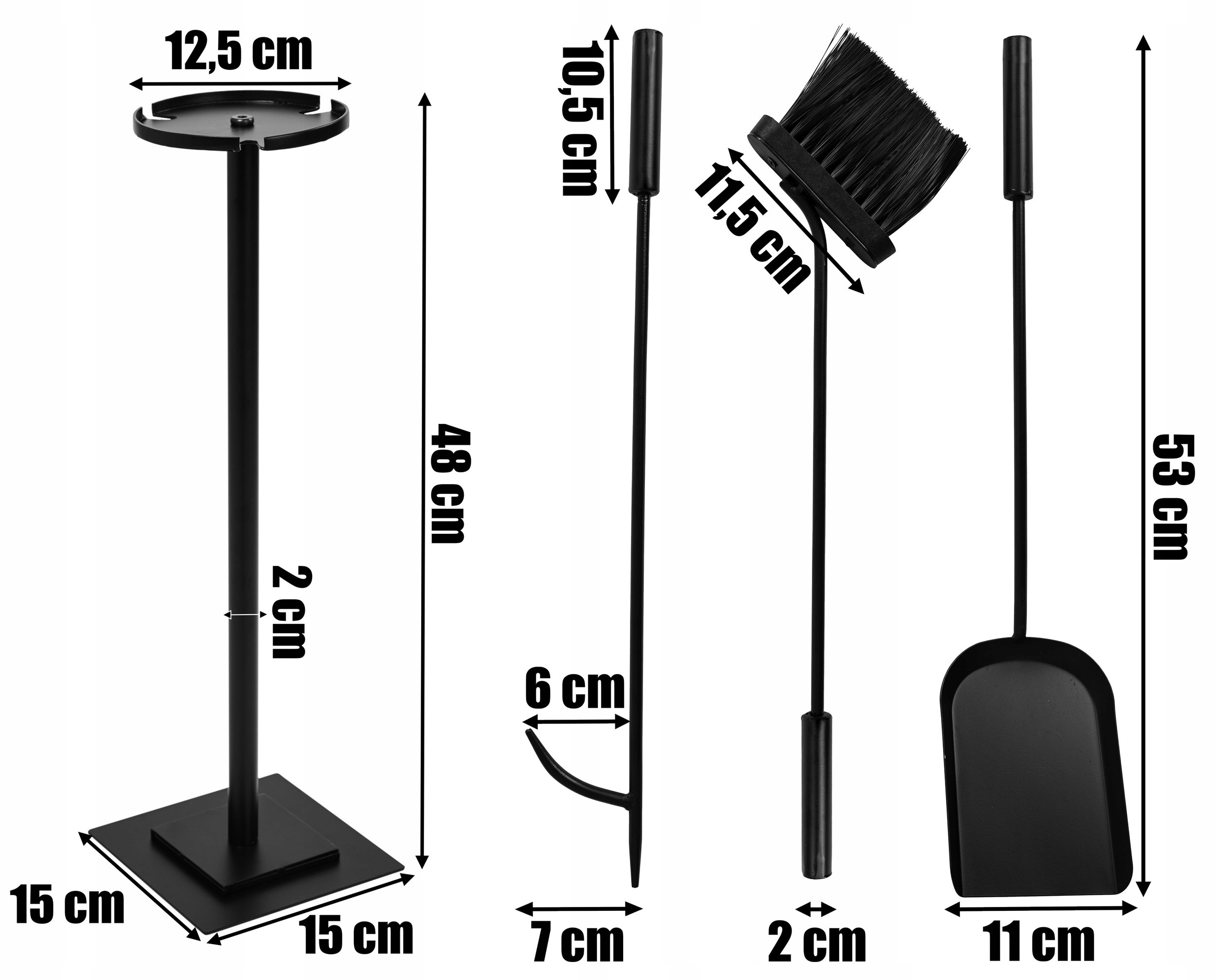 Этот комплект состоит из четырех основных элементов: надежной подставки, практичной метлы, функциональной кочерги и удобного совка, включающего все необходимое для поддержания чистоты. и аккуратный камин.