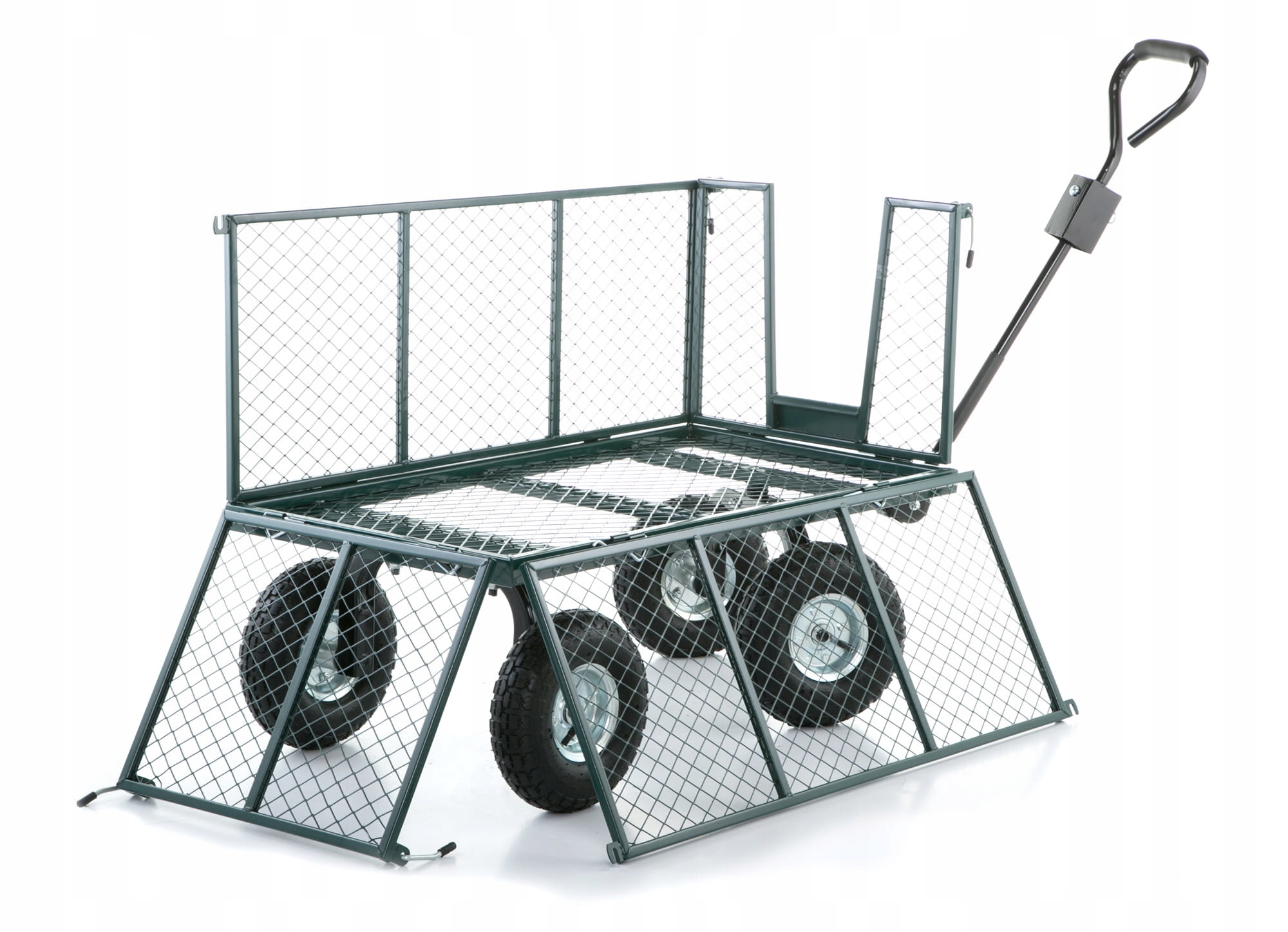 Садовая тележка HIGHER имеет возможность складывать все стороны за несколько секунд. Это чрезвычайно полезная функция, позволяющая значительно ускорить работу с использованием тележки. Специальный стальной предохранитель используется для предотвращения неконтролируемого раскладывания борта. Стоит подчеркнуть, что борта нашей коляски высокие, что позволяет обеспечить большую нагрузку по сравнению со стандартными колясками.