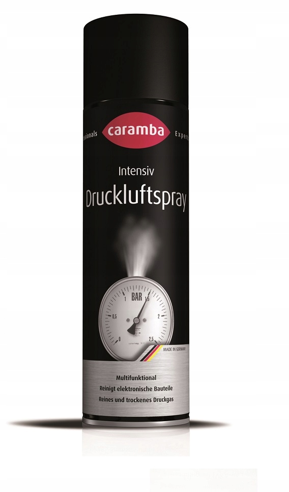 Распыление сжатым воздухом CARAMBA представляет собой чистый сухой газ под давлением, действующий как сжатый воздух. Благодаря эффекту обдува он удаляет мельчайшие частицы пыли, а благодаря длинной трубке доходит до труднодоступных мест. Распыление возможно в любом положении благодаря клапану на 360°. Особенно предназначен для очистки чувствительных поверхностей, поскольку не содержит растворителей и хлорфторуглеродов.