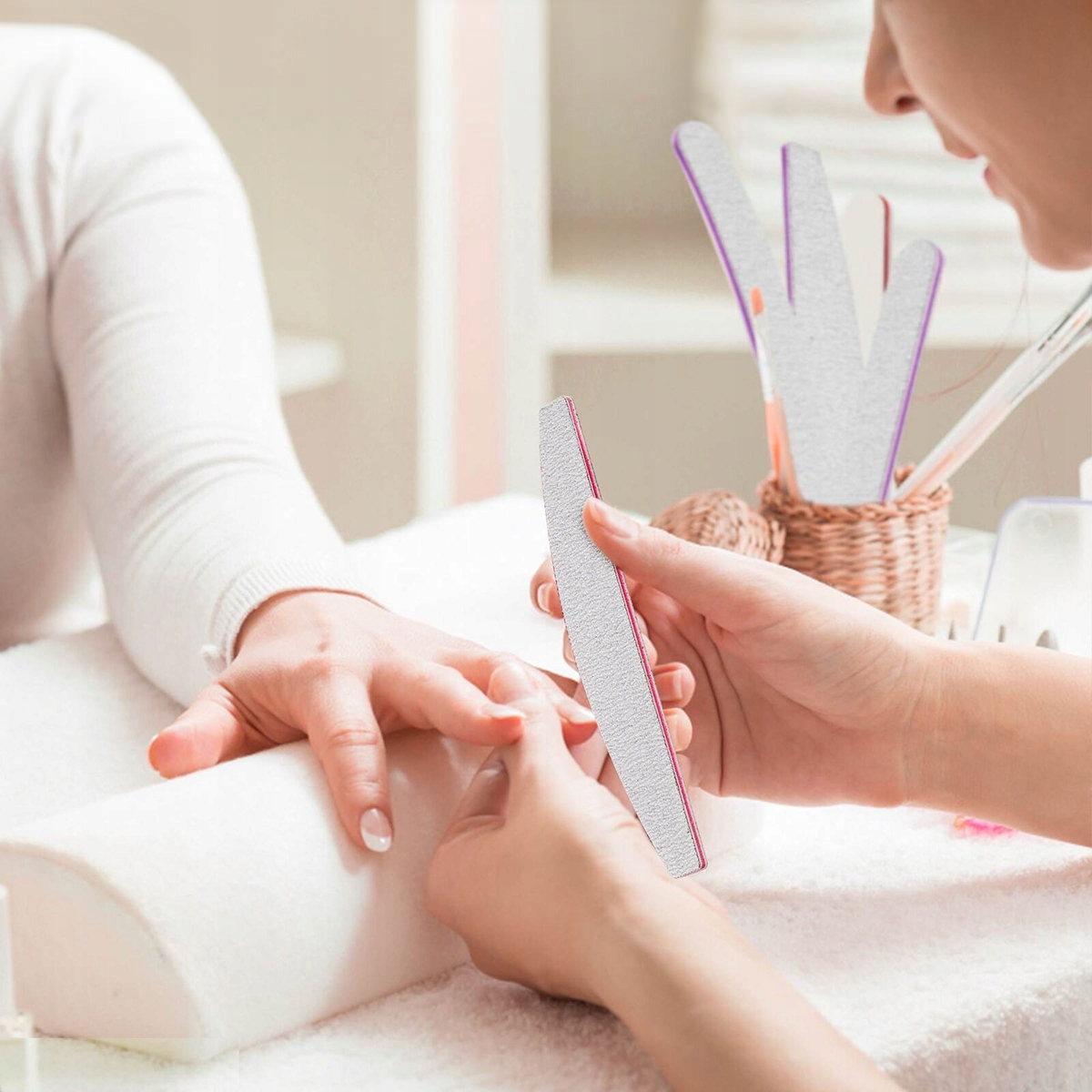 Пилочки для ногтей можно использовать с обеих сторон. Толстая сторона особенно подходит для распиливания слоев акрила или геля. Подходит для салонов красоты, школ/университетов нейл-арта, личного использования, оптовых торговцев и т. д.