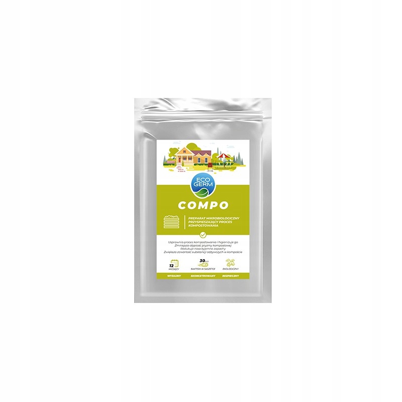 EcoGerm Compo - микробиологический препарат, ускоряющий процесс разложения и ферментации органических отходов, например растительных остатков, плодов, скошенной травы, кухонных отходов, древесной золы, бумаги, коры, опилок и измельченной филиалы