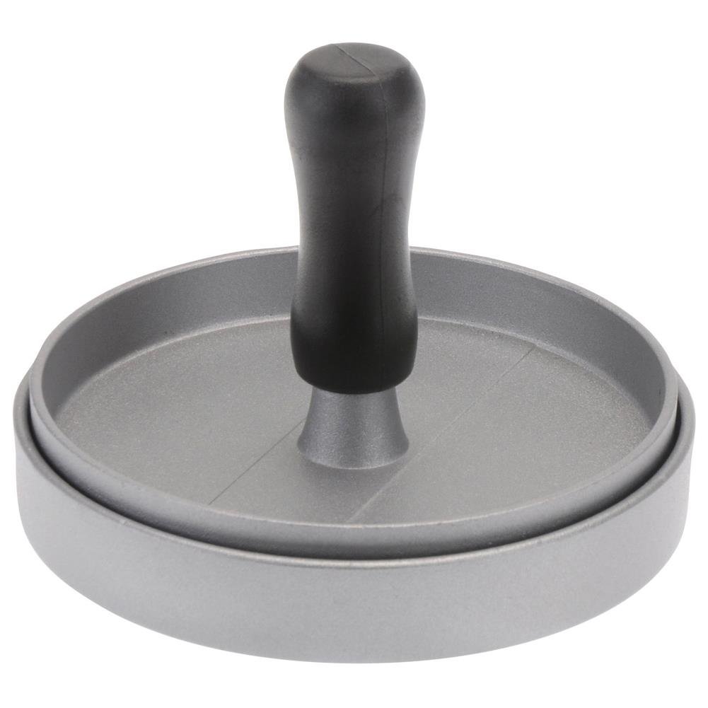 Пресс алюминиевый для подготовки мяса для гамбургеров. Работать он будет преимущественно в домашних условиях. Это позволяет приготовить мясо идеальной формы и толщины, чтобы оно прожарилось равномерно. Пресс имеет специальные надрезы, благодаря которым мясо выглядит вкусным и хрустящим. Инструмент очень прост в использовании, приготовить бургеры сможет каждый. Мясо приправьте, выложите в форму и прижмите штампом.