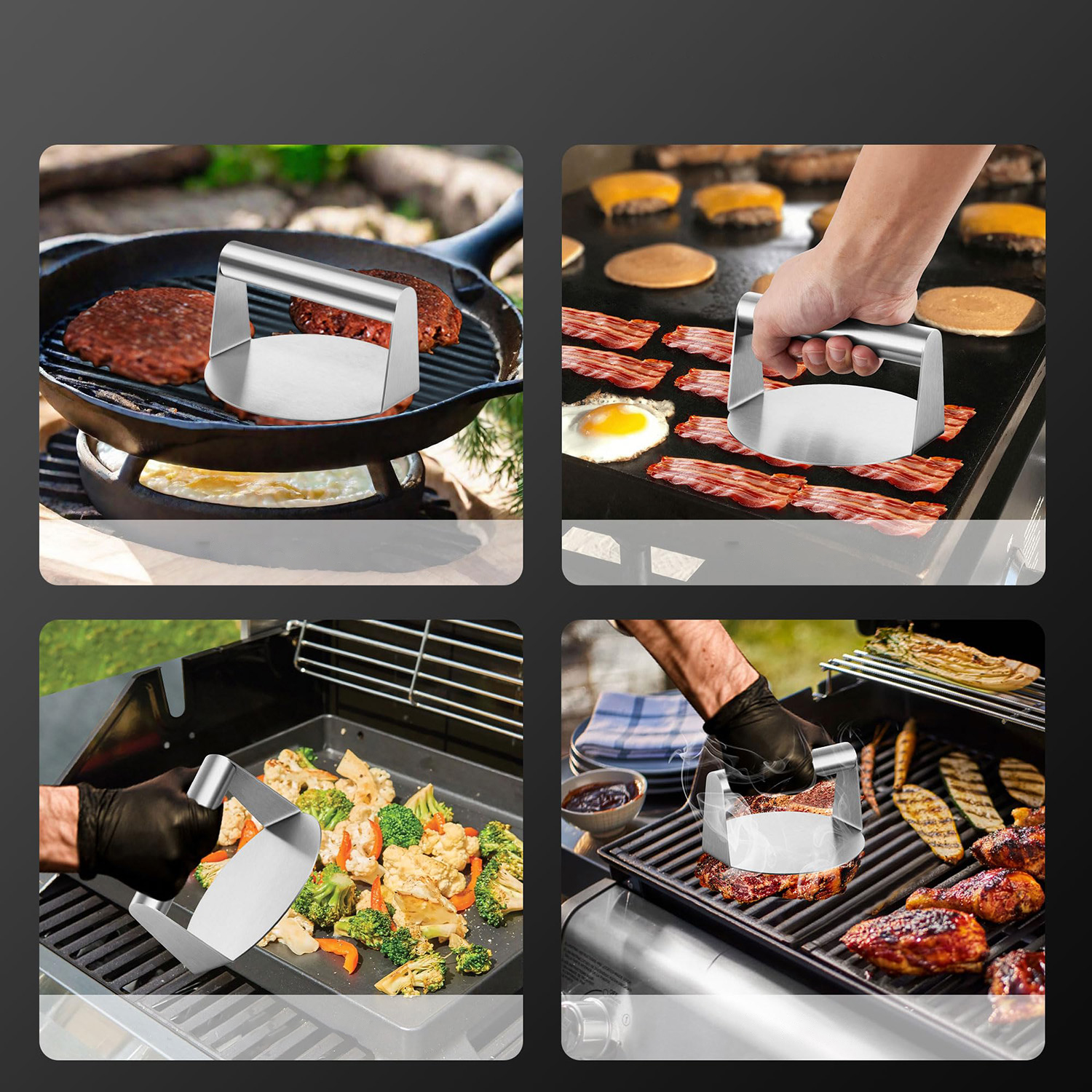 ➡️Разработан специально для эффективного приготовления на гриле гамбургеров, сэндвичей, бекона, стейков, говядины, котлет, колбас, сыра и панини. *Подходит для грилей, сковородок, кастрюль и многого другого, идеально подходит для приготовления пищи на открытом воздухе и в помещении.