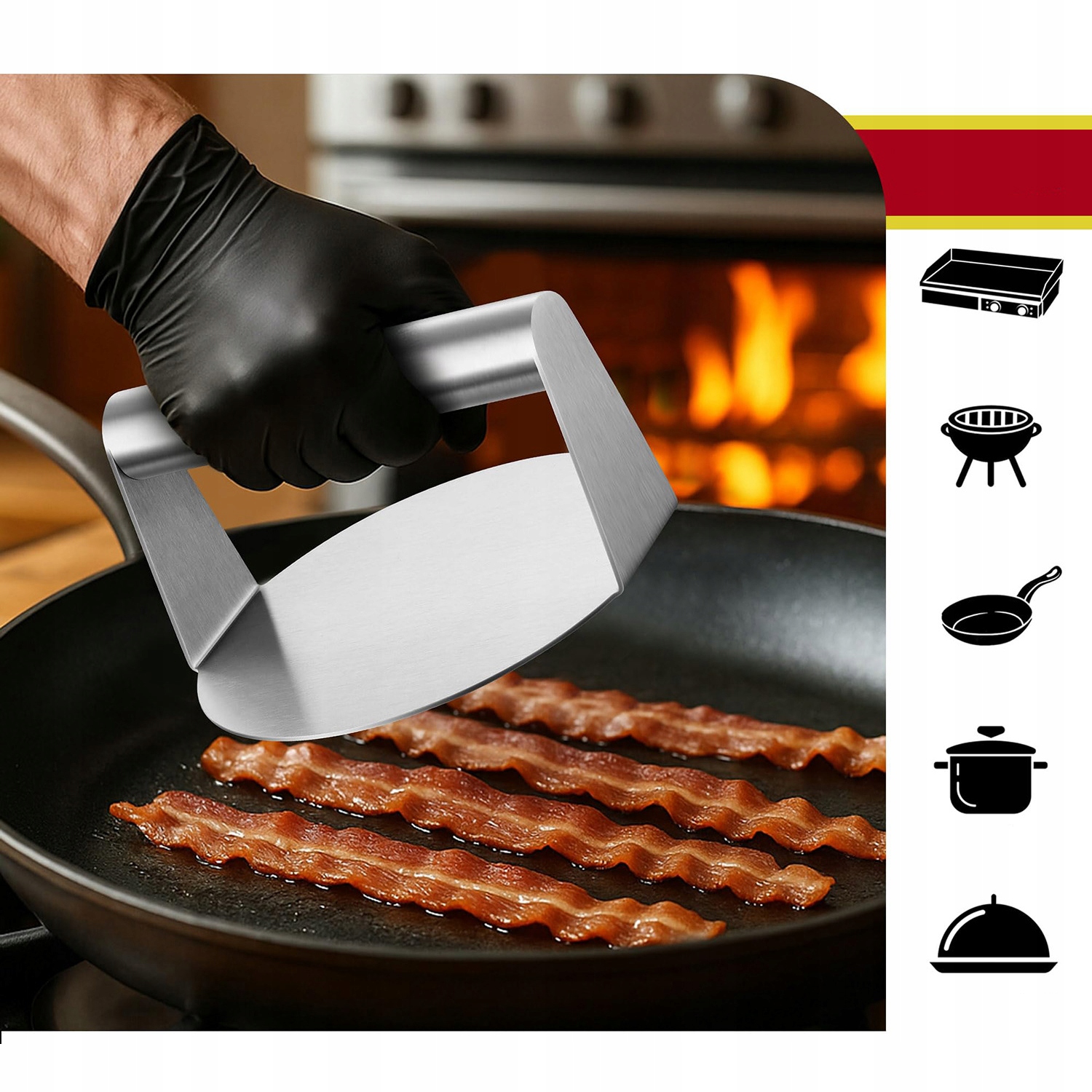 ➡️Пресс для гамбургеров Smash достаточно тяжелый, чтобы разровнять пищу и выдавить лишний жир, не повредив ее.