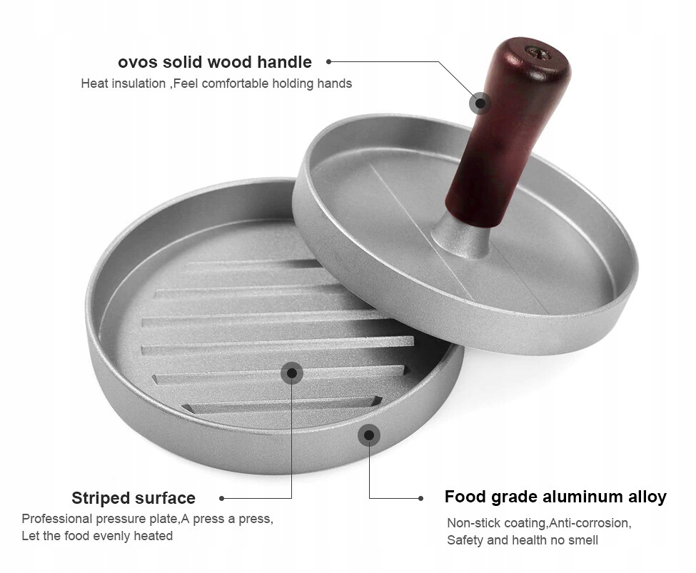 - Благодаря прессу все ваши бургеры будут иметь правильную форму и вес, и вы сможете готовить вкусные бургеры