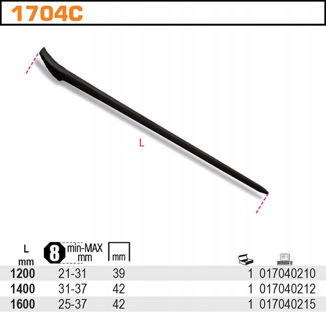 ДВУХСТОРОННИЙ ПРИЗ, С ОГНУТЫМ И ЗАОСТРЕЧЕННЫМ ПЛОСКИМ КОНЦОМ, 1200 ММ БЕТА