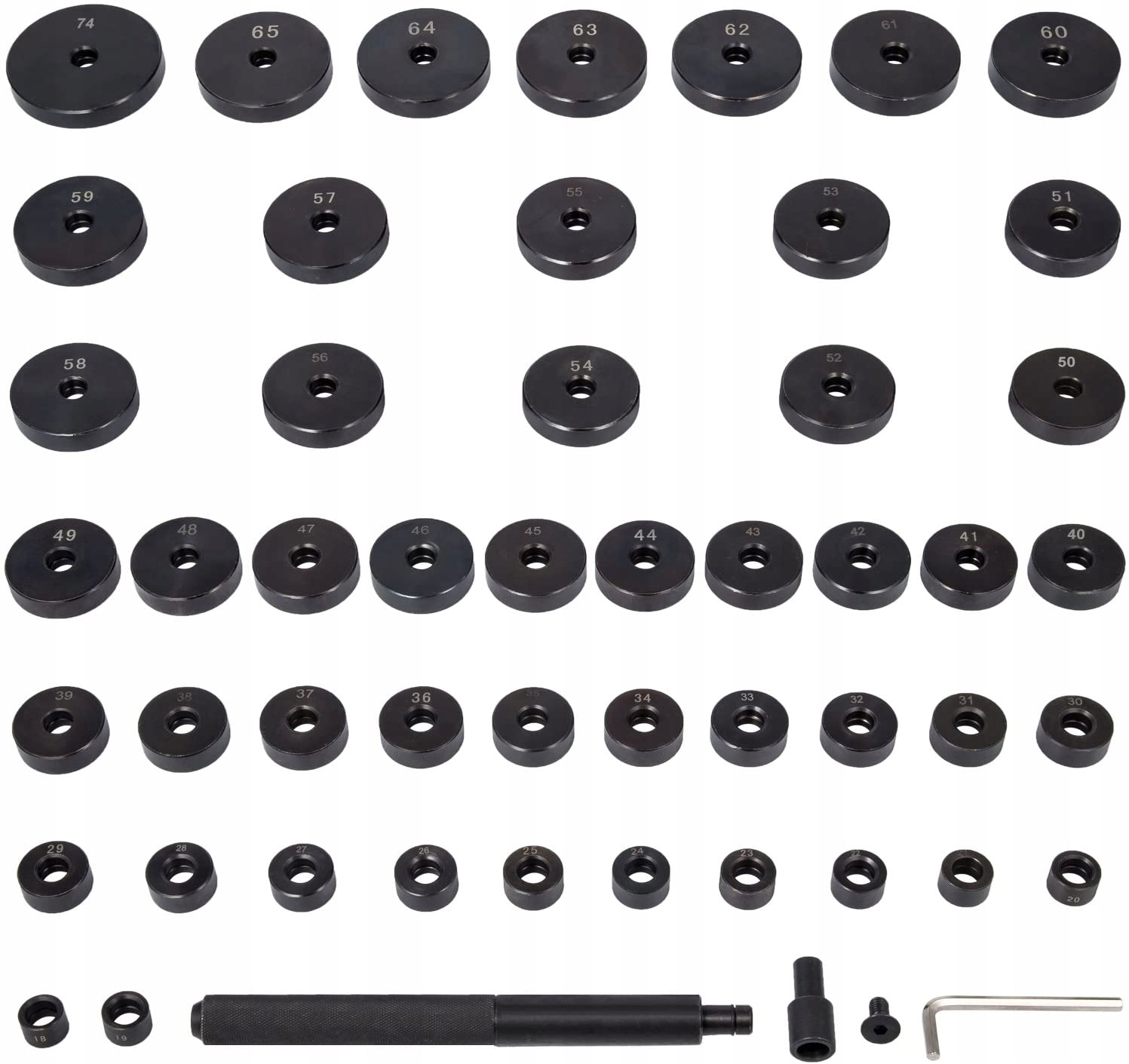 Новый комплект переходников для забивания подшипников, металлорезиновых втулок и пальцев, 52 элемента.