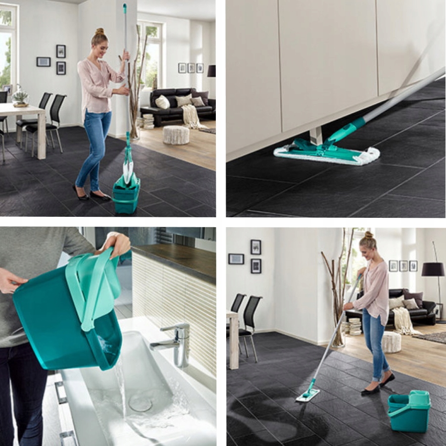 Стирка зигзагом: Благодаря маневренному и плоскому шарниру на 360° стирка зигзагом с помощью системы Leifheit чрезвычайно проста – даже в тяжелых условиях. -доступные места, например, под шкафами.