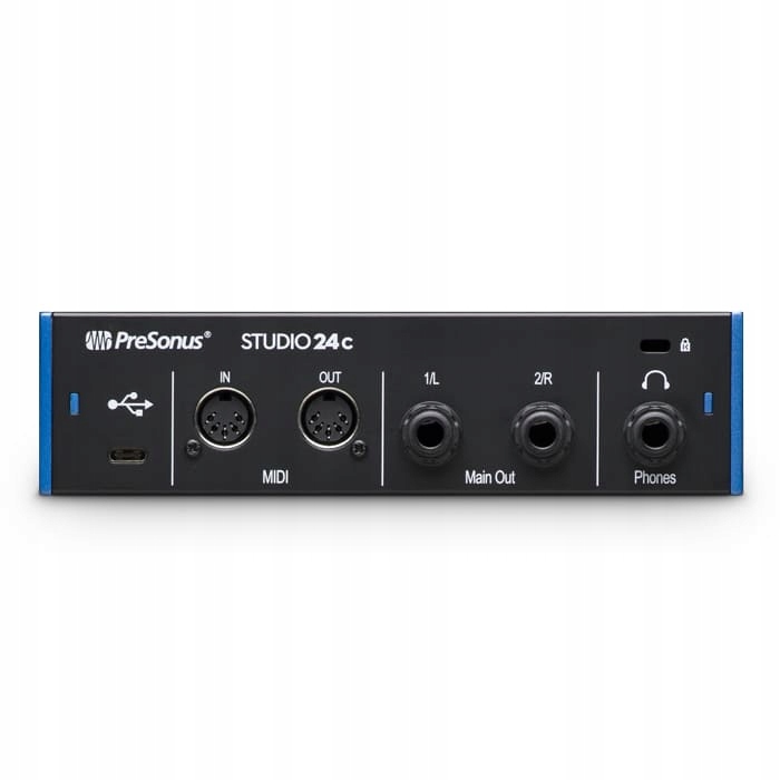2-дюймовый аудиоинтерфейс Studio 24c с 2 выходами поддерживает подключение к компьютеру через USB-C и включает комбинированные микрофонные/инструментальные/линейные входы с фантомным питанием +48 В для конденсаторных микрофонов; балансные ¼-дюймовые TRS, основные линейные выходы; и контроль выходного уровня. Встроенный MIDI-интерфейс позволяет подключить клавиатуру, звуковой модуль или панель управления. Ручка микшера объединяет аналоговый вход и компьютерное воспроизведение для мониторинга с малой задержкой.