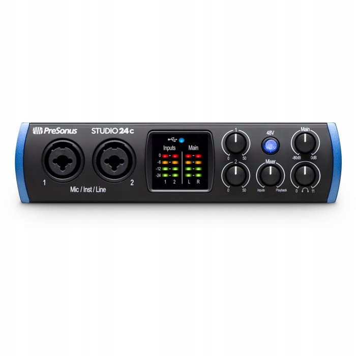 Легко интегрируется с программным обеспечением для производства Presonus Studio One Music Music, интерфейс Studio 24C работает практически со всеми программами записи MacOS и Windows. Легко учиться, Studio One позволяет вам составлять, записывать и производить без отвлекающих инструментов. Вам нужна новая петля или образец для вашего последнего производства? Studio One позволяет вам делать покупки, слушать и покупать новый контент непосредственно в производственной среде. 2-дюймовый, 2-из один Audio Studio 24C-интерфейс имеет возможность подключить компьютер через USB-C и содержит входы Combo Mic / Instrument / Line с Phantom + 48 В питания к емкостным микрофонам; устойчивые, ¼ дюйма TRS, основные выходы линии; и контроль уровня выхода