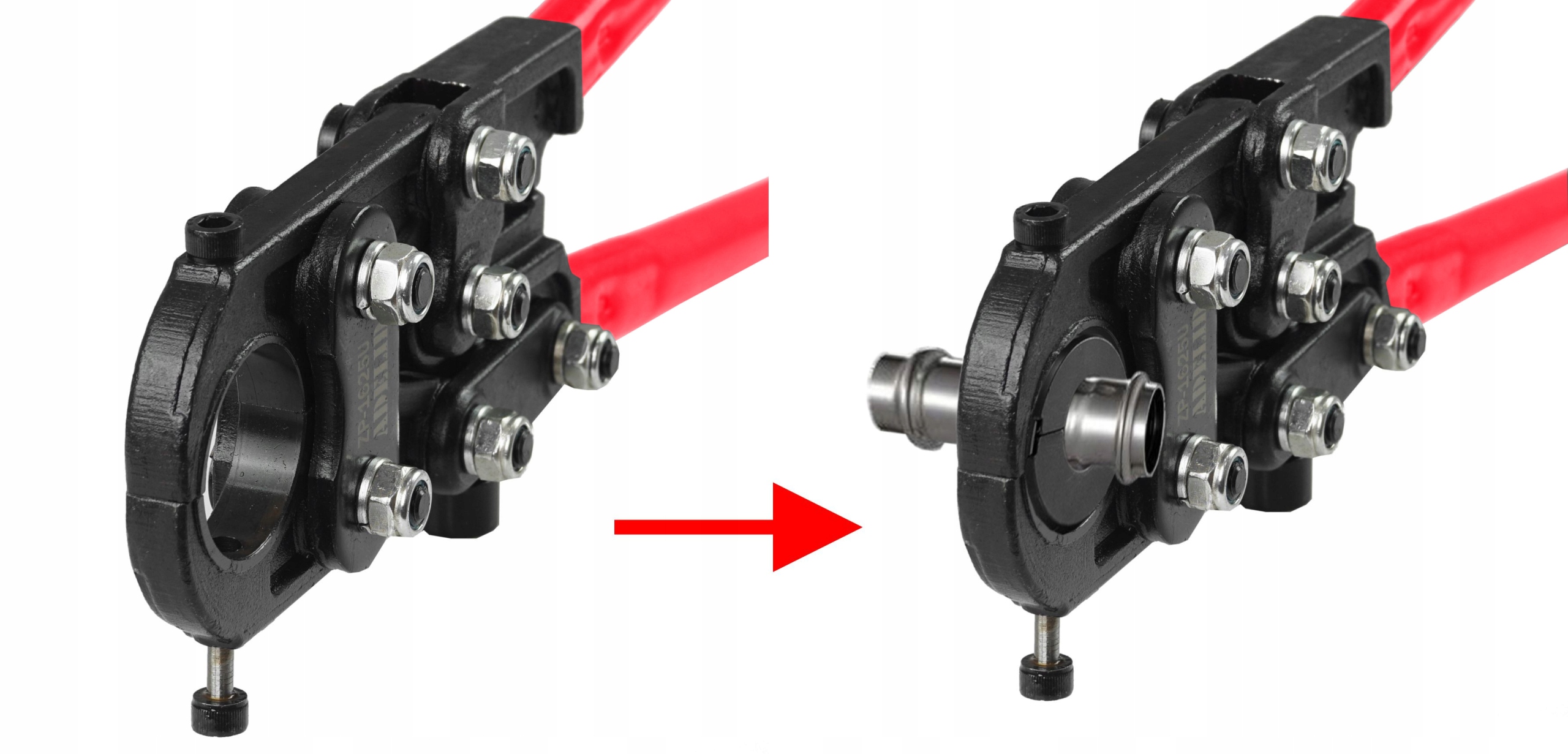 Сменные губки, входящие в комплект, позволяют работать с трубами с диаметр от 16мм до 25мм.