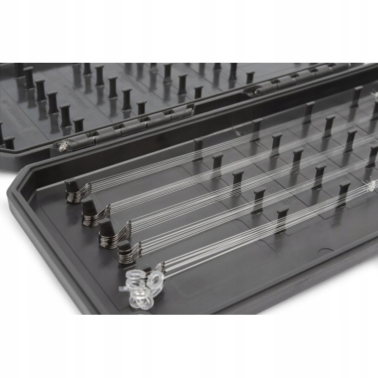 Компактное решение для хранения более коротких выносок. Ящики Absolute Leader изготовлены из прочного усиленного корпуса, который закрывается магнитами для обеспечения водонепроницаемости. Огромный ассортимент внутренних булавок различной длины позволяет привязывать поводки длиной от 2 дюймов (5 см) до 6 дюймов (15 см), что идеально подходит для современных методов ловли.