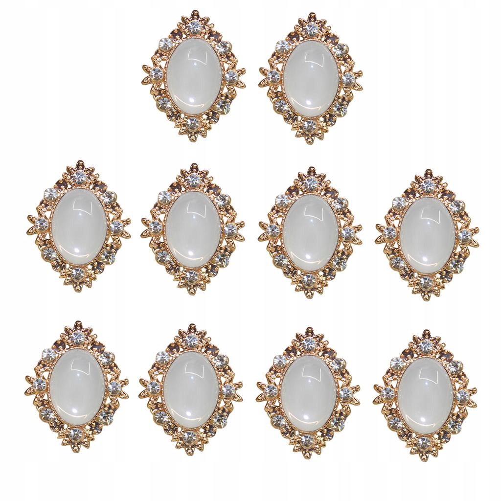 Prettyia 10шт Кабошон на пуговицах со стразами и плоской спинкой кремовый 30х25мм