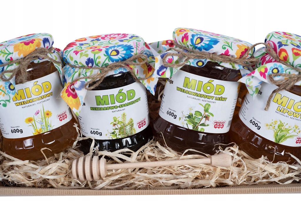 Prezent dla Mamy / Kosz na Dzień Matki - Zdrowy zestaw 4 polskich miodów