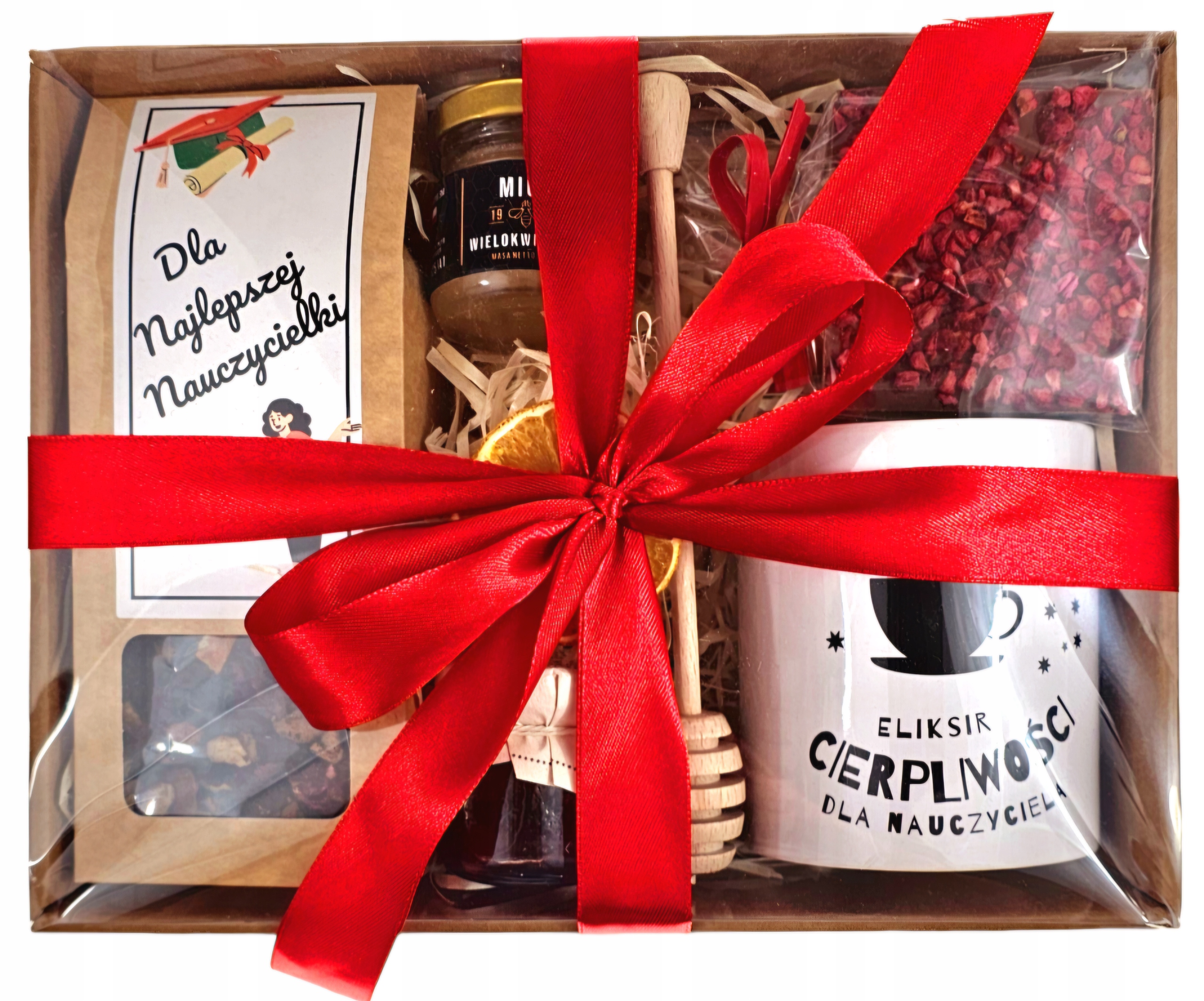Ищете подарок учителю на конец учебного года? Вы попали в идеальное место! Мы создали для вас готовый подарок. Чай, вкуснейшие джемы и мед, шоколад ручной работы и натуральные украшения, а также кружка с гравировкой – все в одном, элегантно упакованном подарочном наборе. Готовый подарок для любителей ароматных вкусов. Идеально подходит для любого случая!