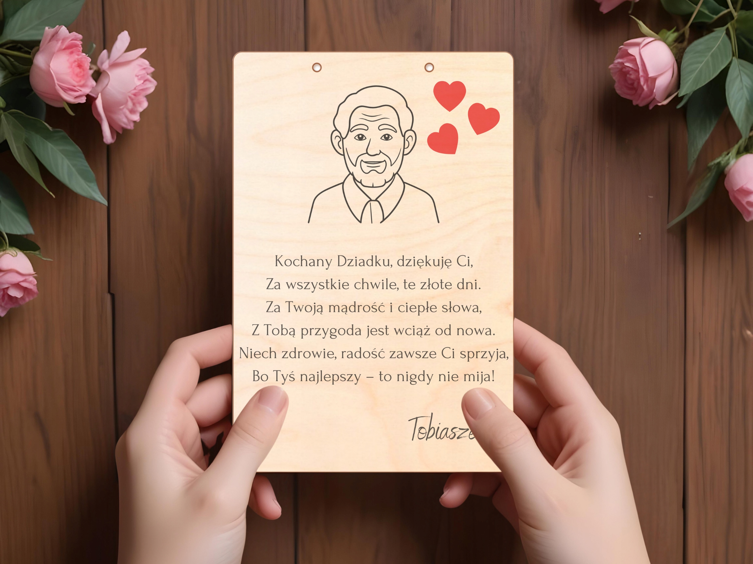 Prezent na Dzień Dziadka Kartka z Życzeniami Nadruk na Drewnie Kolor Kopert