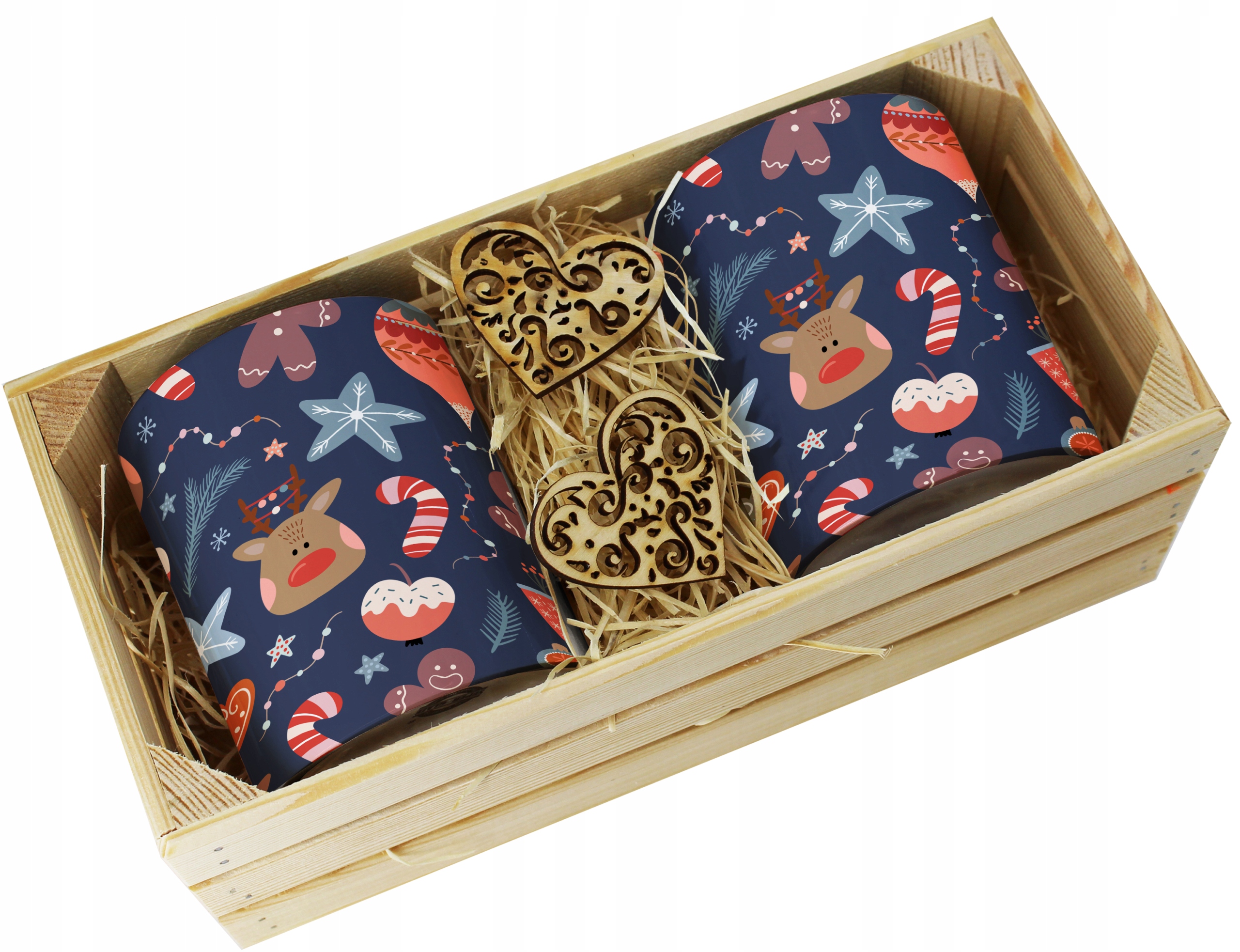 PREZENT ŚWIĄTECZNY ZESTAW KUBKÓW W SKRZYNCE KUBKI