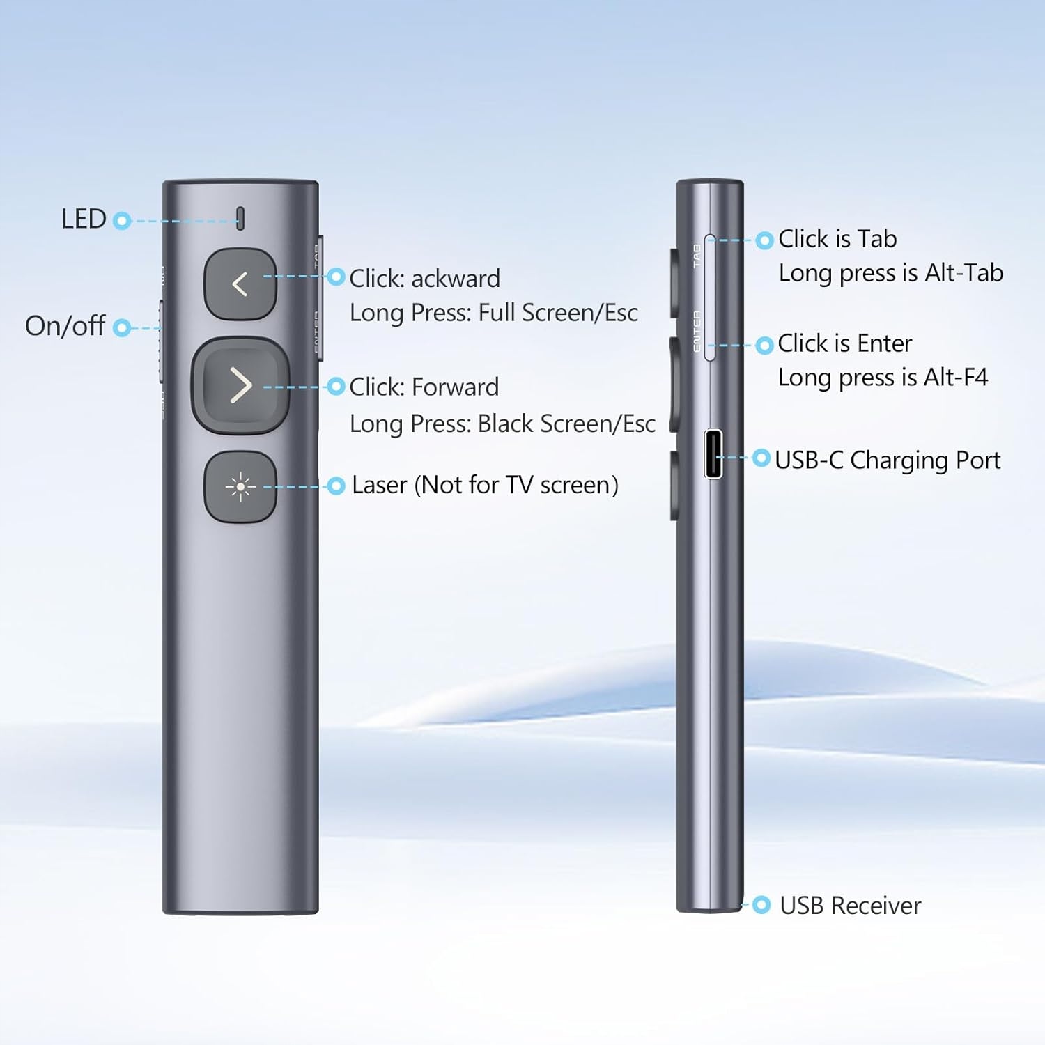 Кликер для презентаций Norwii N95 с приемником USB-A и C, кликер PowerPoint для дистанционного управления презентациями, беспроводная указка с аккумулятором, устройство подачи слайдов для ПК/ноутбука/книги