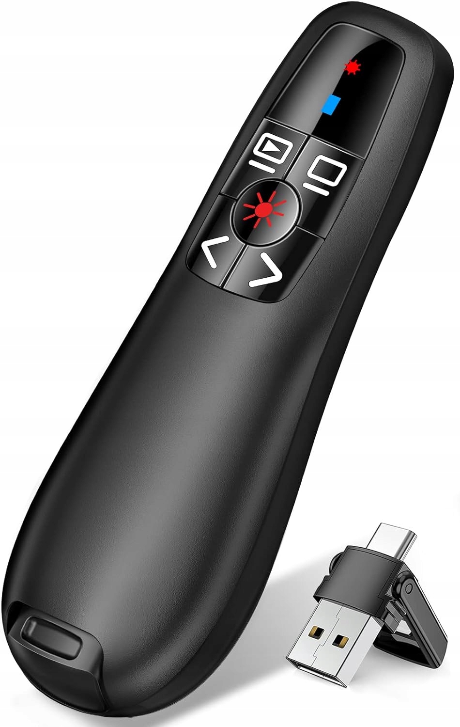 - ✅Приёмники USB A и Type C встроены в пульт презентатора, что позволяет свободно переключаться между различными портами устройств.