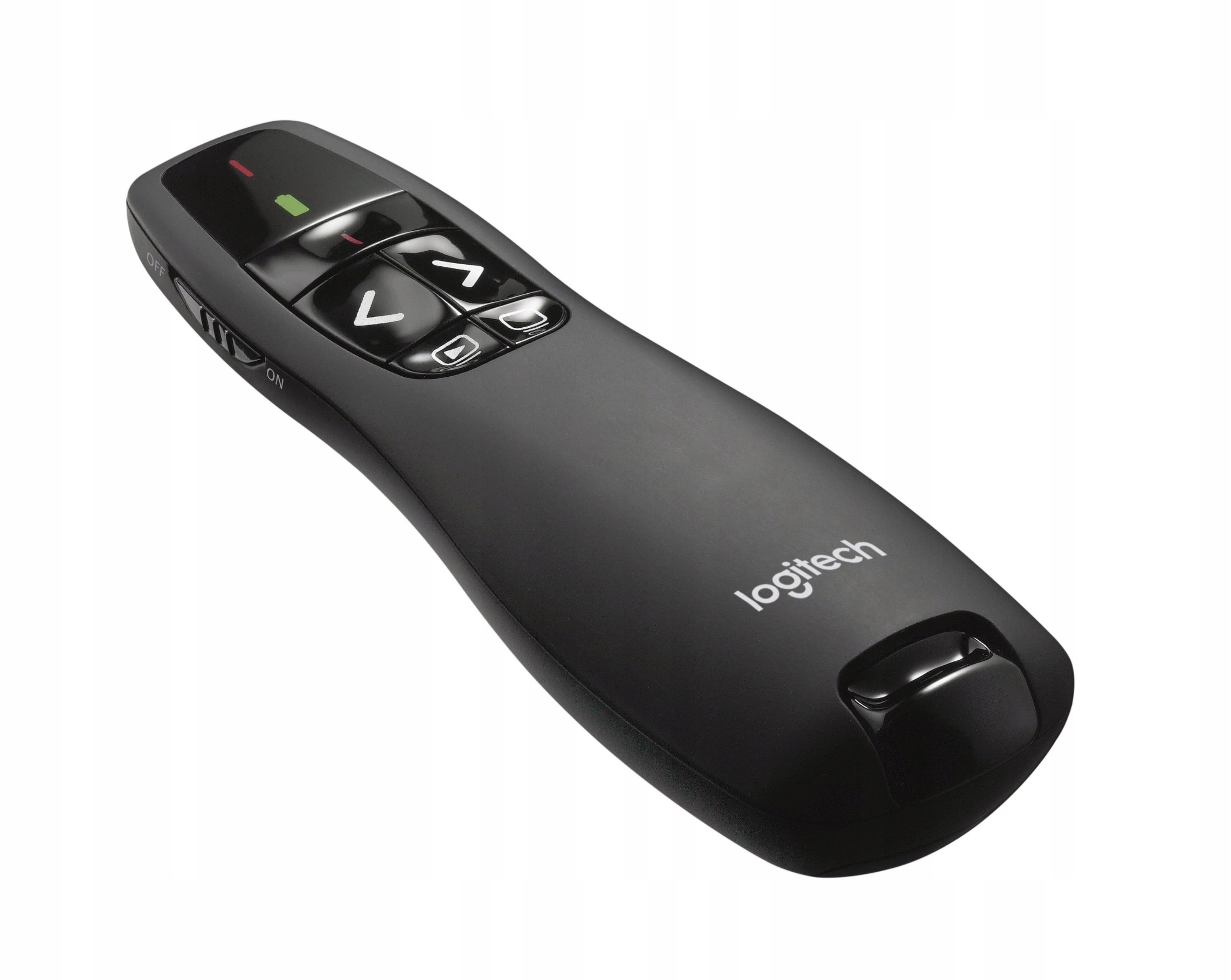 Logitech R400 — это функциональное указательное устройство с интуитивно понятным расположением кнопок, оснащенное красной лазерной указкой, которая облегчает проведение презентаций даже в очень темных помещениях.