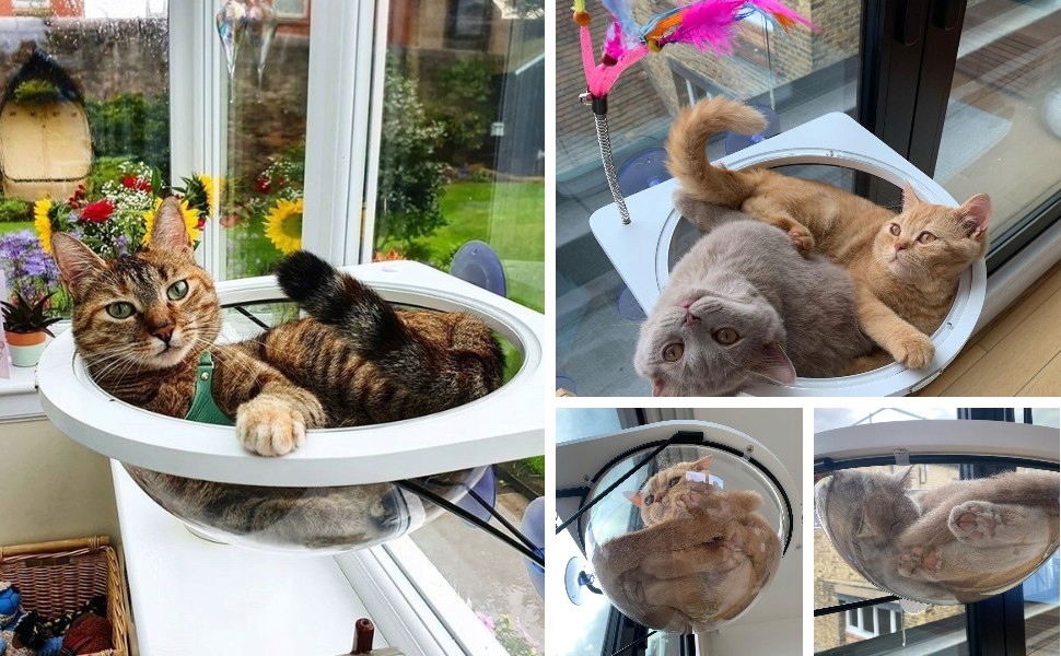 【Отличное украшение】 Уникальный прозрачный дизайн переноса с полушарием обеспечивает универсальный вид вашего очаровательного четырехгрупного друга. Кошка наслаждается видом за окном, в то время как вы можете полюбоваться его прекрасным внешним видом, лежащим на солнце.