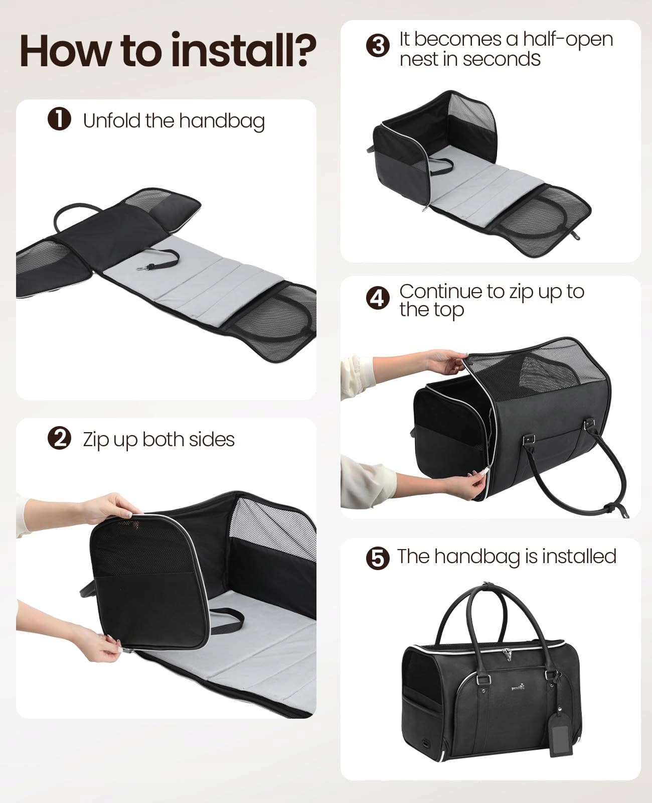 Одним из самых необычных преимуществ этой сумки является способность превратить его в непосредственное логово. Передний клапан мешка может быть расширен, что обеспечивает животному дополнительное пространство для движений и растяжения. Интерьер сумки выстлана мягкой основой, которую можно легко удалить и промыть. Благодаря этому наши домашние животные могут получить максимальный комфорт во время путешествий, а также момент расслабления как в путешествиях, так и дома.
