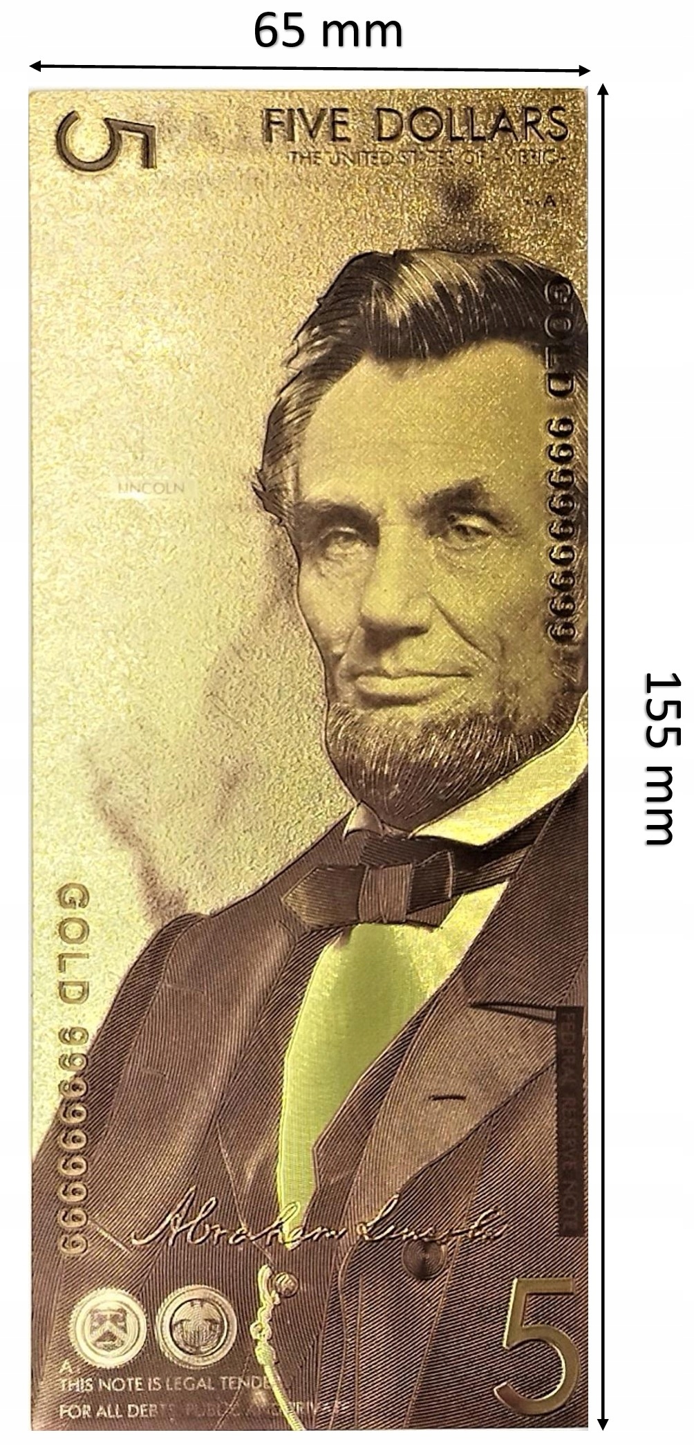 На аверсе банкноты изображен Авраам Линкольн – 16-й президент США. Он занимал свой пост с 4 марта 1861 года по 15 апреля 1865 года. Его жизнь и президентство закончились нападением на театр Форда в Вашингтоне. Это был первый подобный случай в американской истории. Изображение на банкноте основано на портрете Мэтью Брейди, датированном 9 февраля 1864 года.