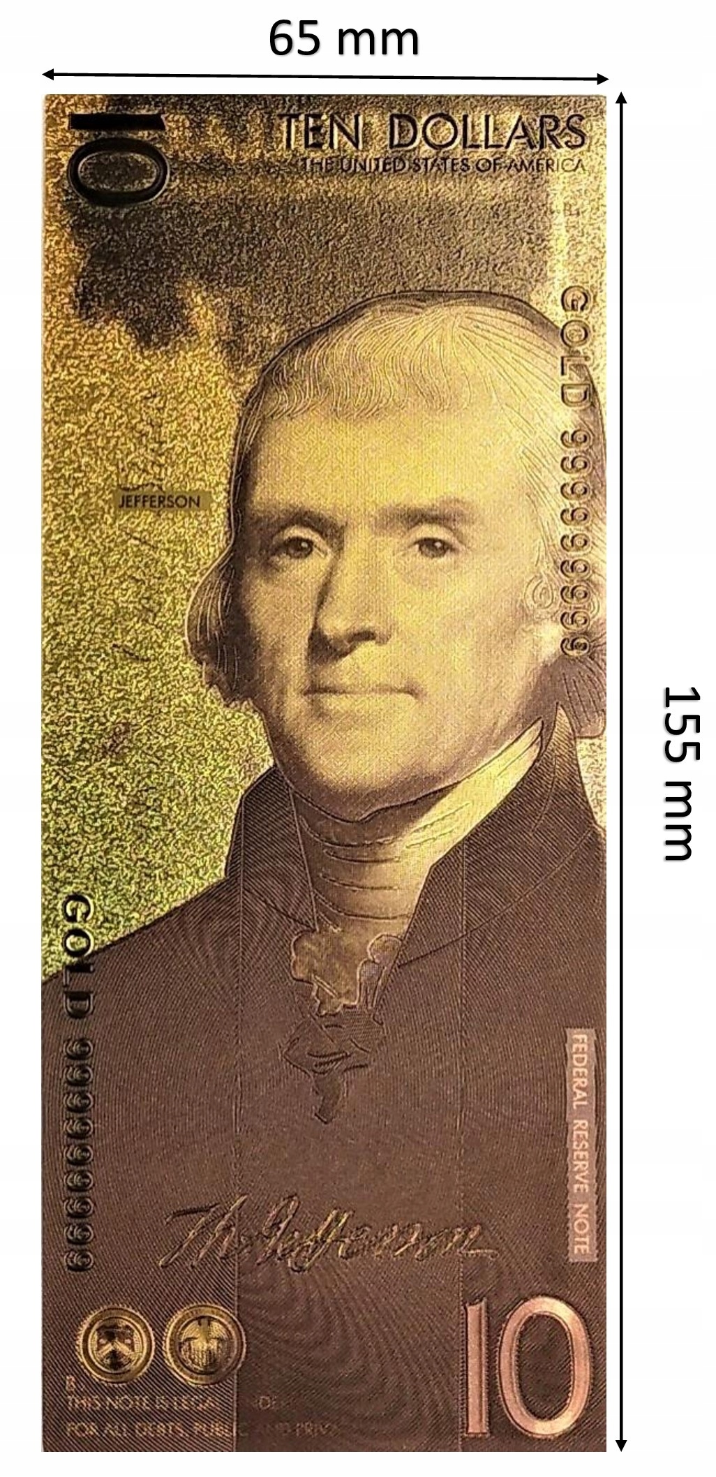 Красивая коллекционная банкнота достоинством 10 долларов с изображением 3-го президента США Томаса Джефферсона.