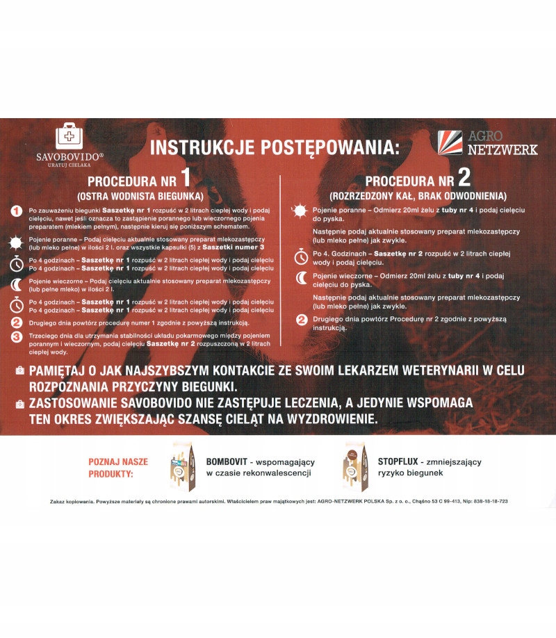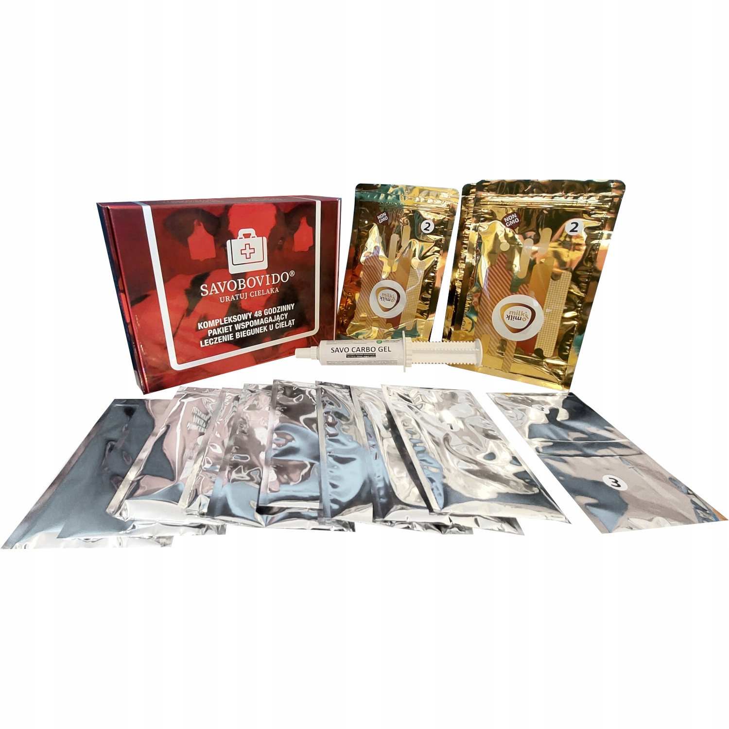 Комплексный набор продуктов, позволяющий немедленно оказать помощь. помочьв случае возникновения у телят развития диареи различной интенсивности или происхождения. Каждого набора хватает на 48 часов по 1 штуке.Продукты, входящие в набор, не являются лекарственными средствами, они дают время для диагностики и устранения причин диареи. Использование набора Савобовидо® не заменяет ветеринарное лечение, а лишь поддерживает его, повышая шансы телят на «спасение» и выздоровление.
