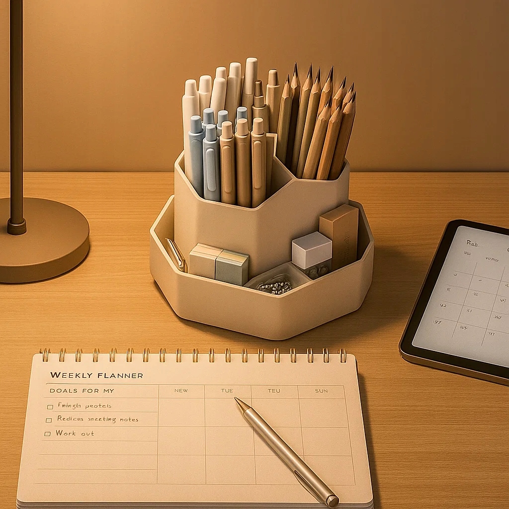 Практичный и поворотный настольный органайзер — идеально подходит для всех ваших инструментов.