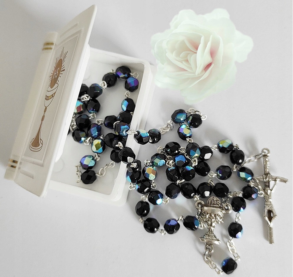 КРАСИВЫЕ ЧЕТКИ ДЛЯ ПРИЧАСТИЯ, ТЕМНО-СИНИЕ, КРИСТАЛЛ, В ДЕКОРАТИВНОЙ КОРОБКЕ ДЛЯ МАЛЬЧИКА