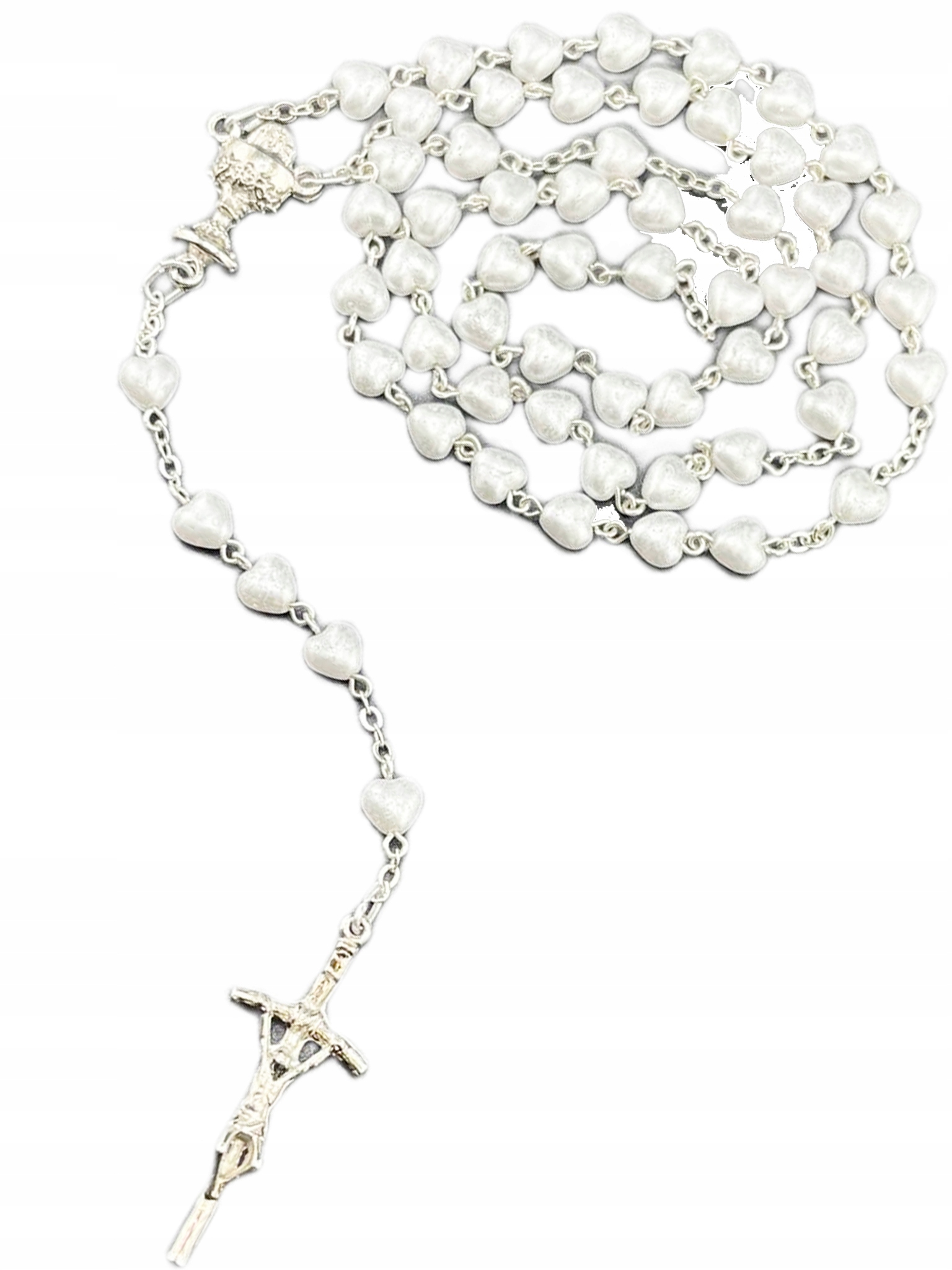 Весь четки (5 секретов) для Первого Святого Причастия для девушки. бусины жемчужного цвета.