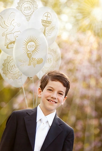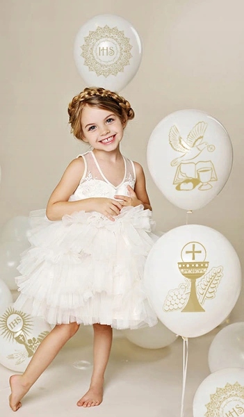 Белые, золотые, с конфетти, принтом, в форме сердца – обязательный элемент украшения праздника Первого Причастия.