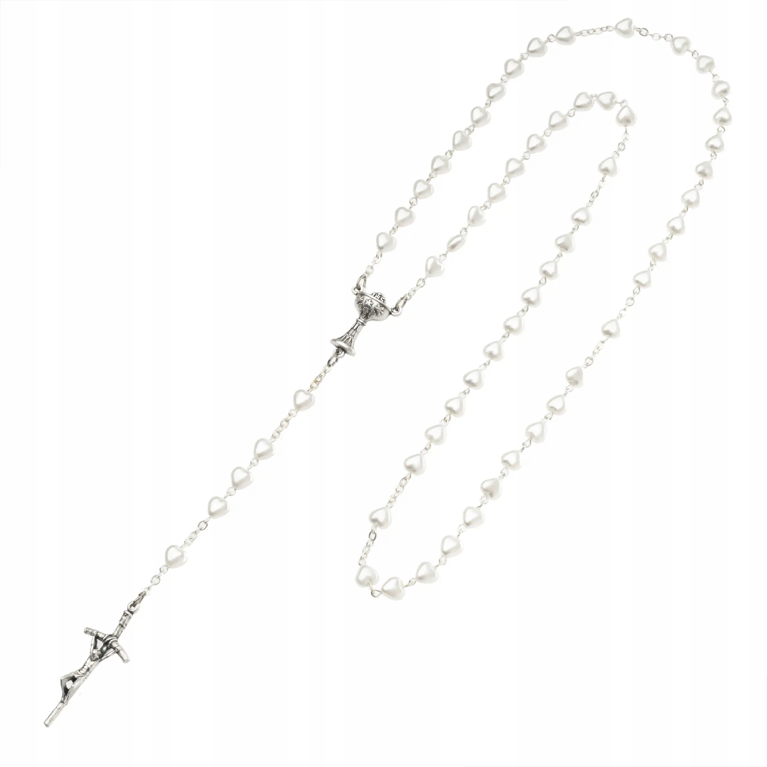Весь четки (5 секретов) для Первого Святого Причастия для девушки. бусины жемчужного цвета.