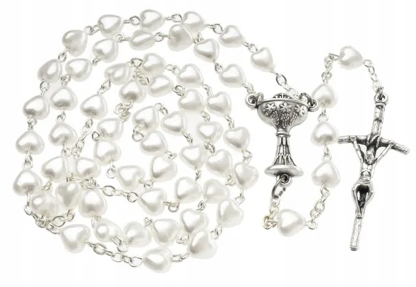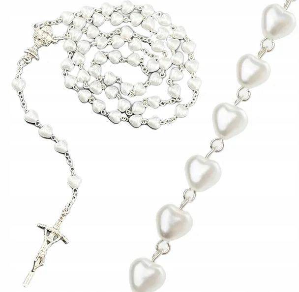 Причастие Розарий Белые сердца в коробке IHS для девушки