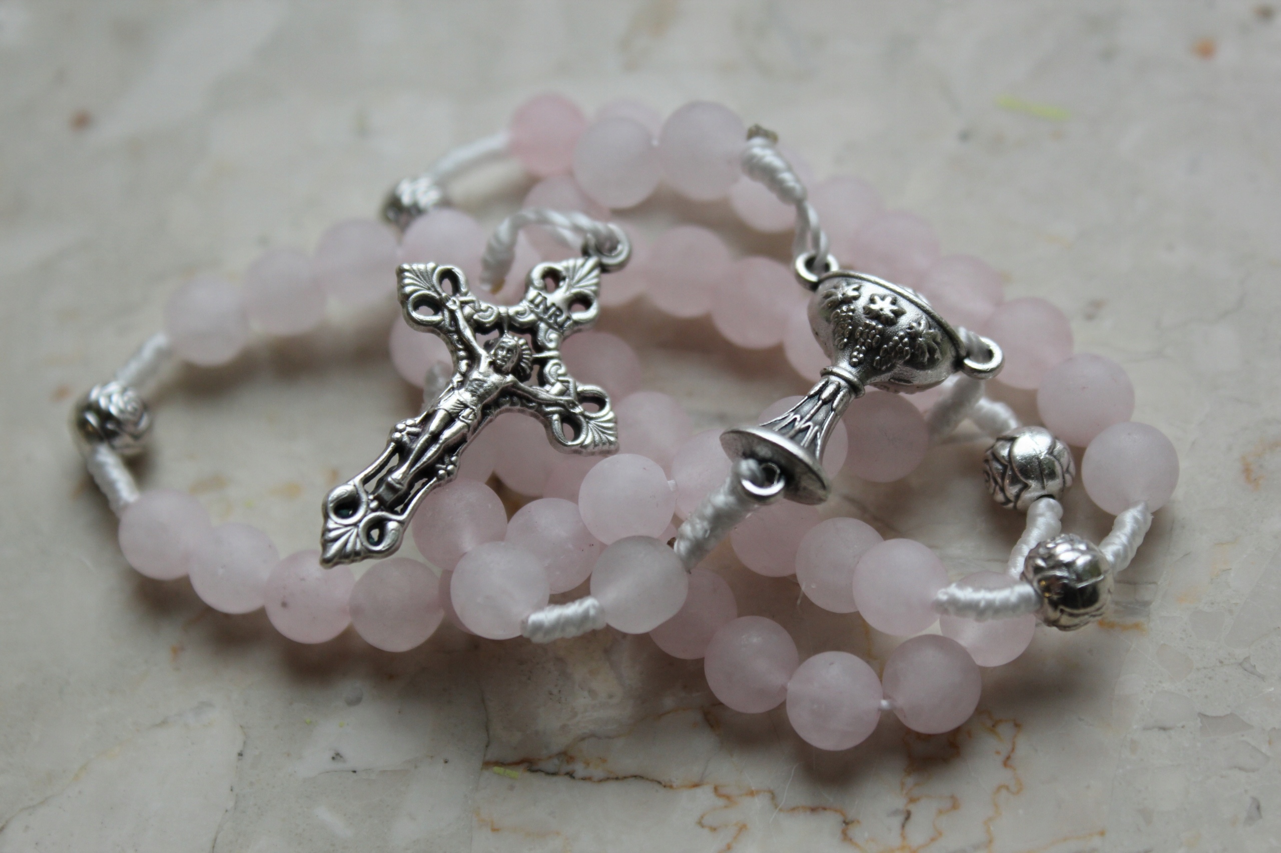 Чётки для причастия - струна из камней розового кварца