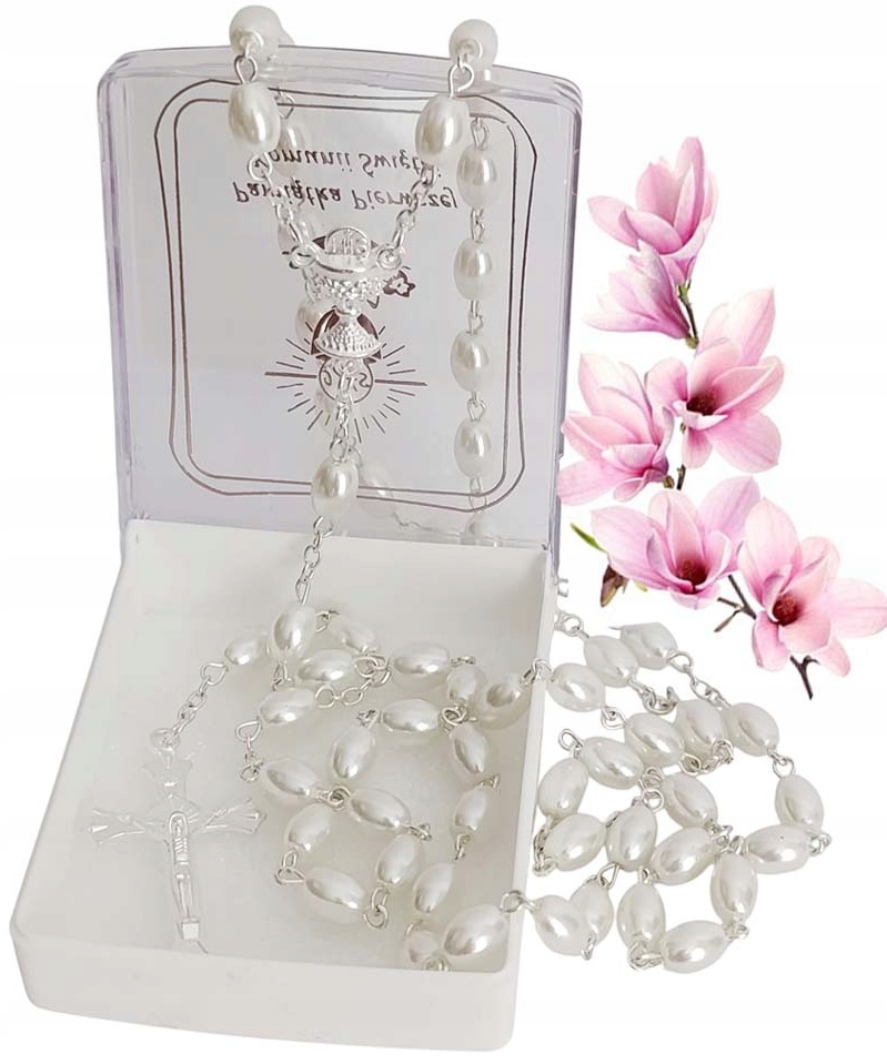Красивое причастие Розарий - Белая овальная жемчужина - в случае для девушки h1>
