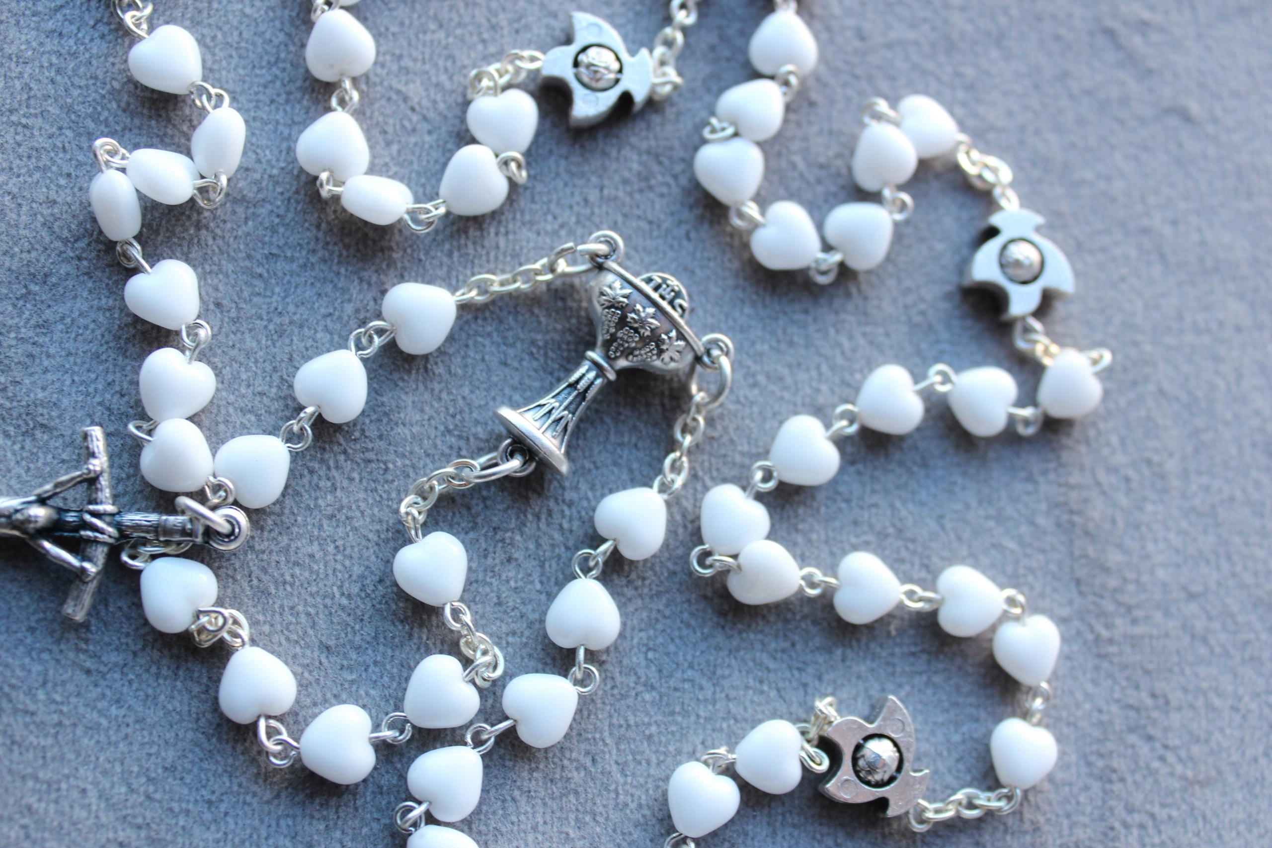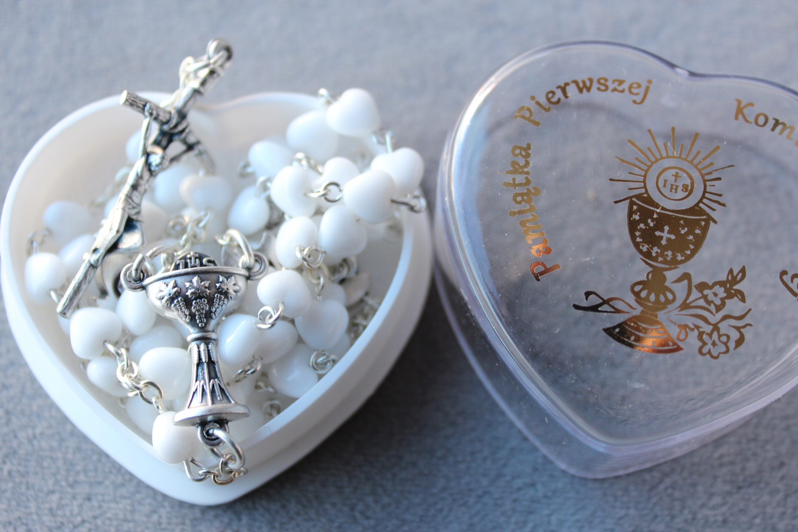 ❤ Элегантное причастие Розарий - сердца с чашкой IHS и Святым Духом в коробке - Сердце из Италии