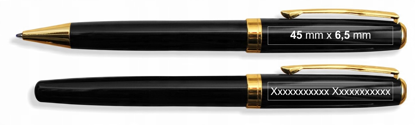 - ручка и ручка — лазерная гравировка вашего имени или другого короткого текста. Место гравировки - верхняя часть пишущих элементов (колпачок) с одной стороны.