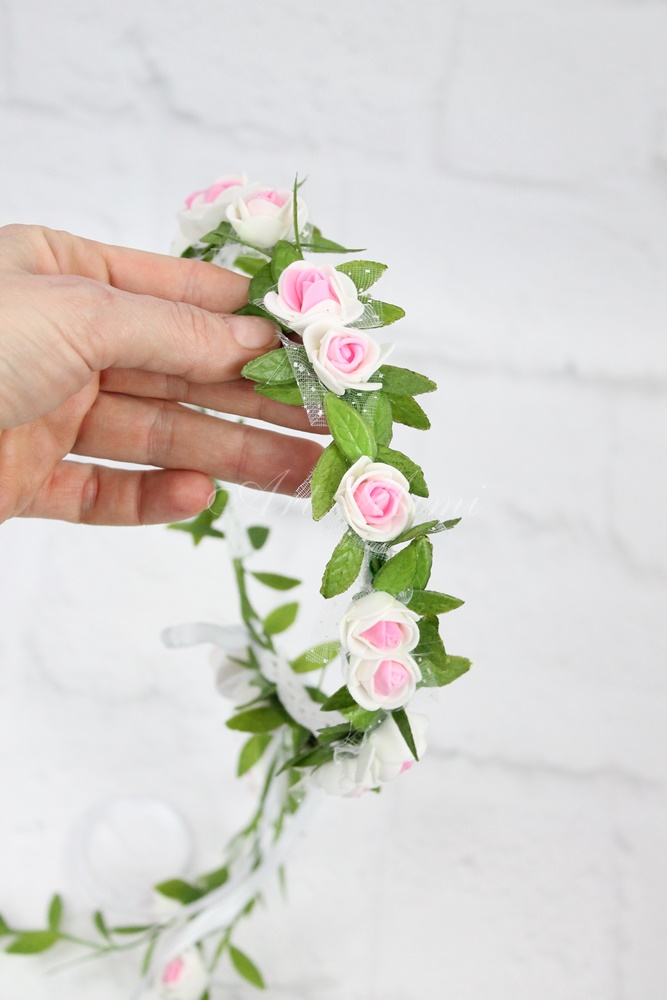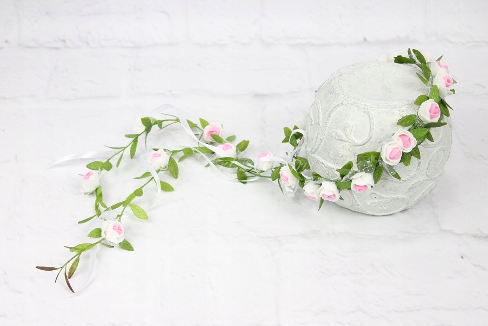 Причастие венок цветочная гирлянда белый розовый модный