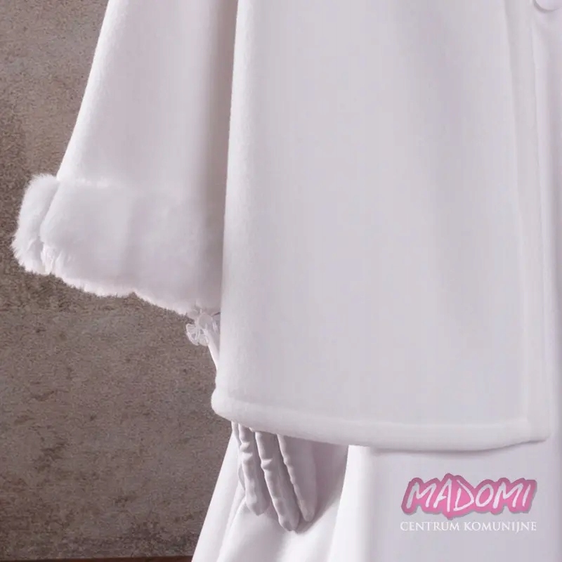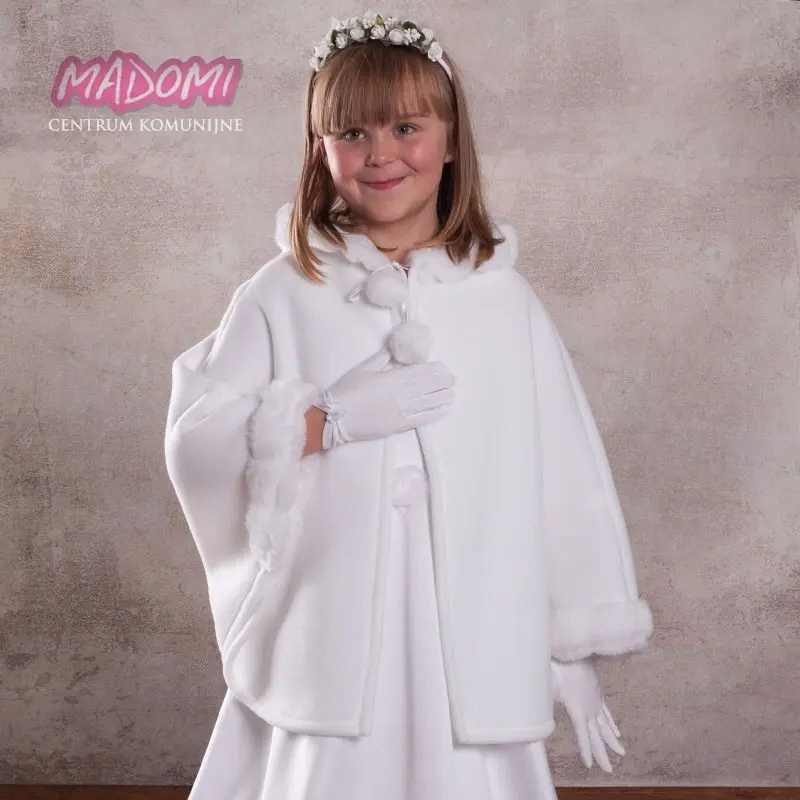Элегантный плащ с капюшоном из белого флиса-отличный выбор для прохладных дней. Его тонкая внешность и функциональность делают его идеальным не только для таких праздников, как Святое Причастие, но и на всю белую неделю. Накидка характеризуется тщательно готовым капюшоном и рукавами, отделанными мягким мехом, который добавляет очарование и обеспечивает дополнительное тепло. Привязанный к шею с помощью очаровательных помпонов, это гарантирует стабильность и ношение комфорта. Длина мыса, около 53 см сзади, эффективно защищает от холода и ветра, обеспечивая при этом свободу движения. Польский продукт является синонимом высококачественного мастерства и ухода за подробностями, благодаря тому, что накидка, безусловно, будет соответствовать ожиданиям даже самых требовательных пользователей