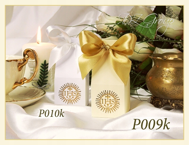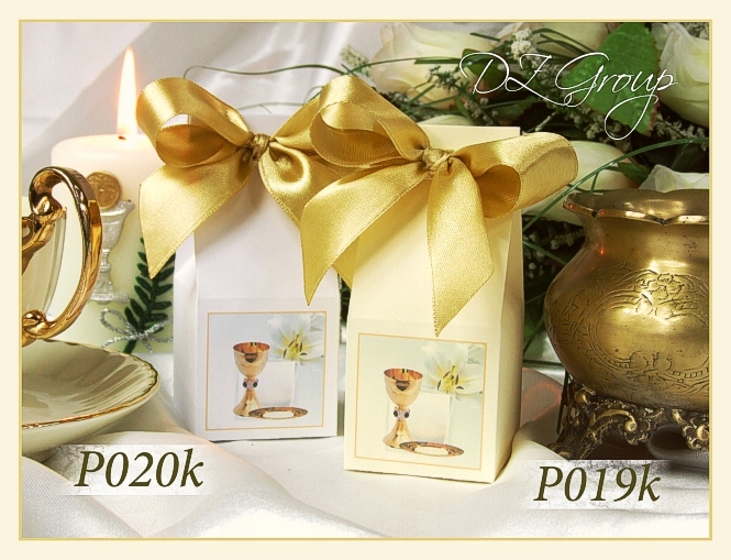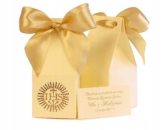 Элегантные коробки, как спасибо, будут работать как небольшая подарочная упаковка для гостей причастия, так и декоративная коробка для конфет или других сладостей.
