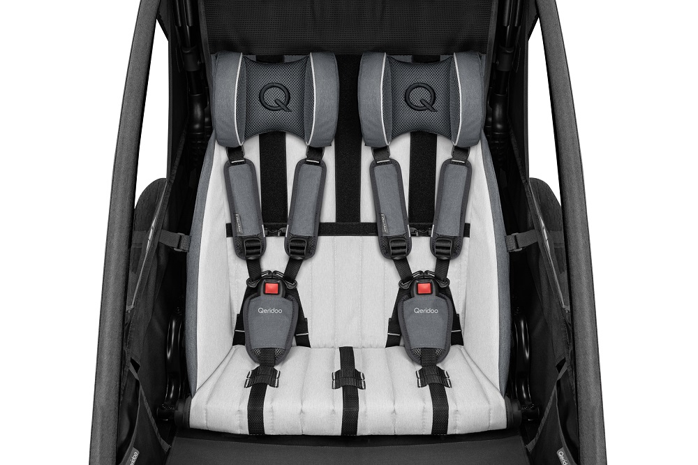 Тщательно продуманная безопасность — важный аспект продукции Qeridoo. Здесь Qeridoo идет на шаг дальше стандарта DIN EN 15918 для велосипедных прицепов и StVZO. Особого внимания заслуживают передовая комплексная система защиты и уникальная система комфортных сидений с адаптивной системой безопасности и функцией SmartLock. Sportrex оснащен защитой от удара сзади и боковой защитой головы, которые обеспечивают существенный запас безопасности в экстремальных ситуациях.