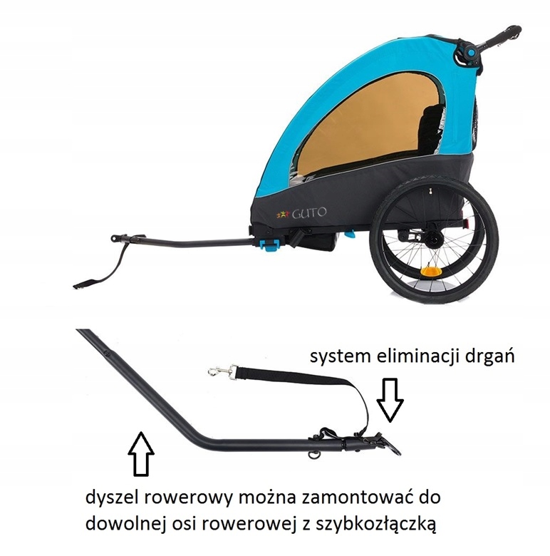 – Велосипедное дышло со специальным наконечником, благодаря которому прицеп с детьми движется плавно, без рывков и вибрации.