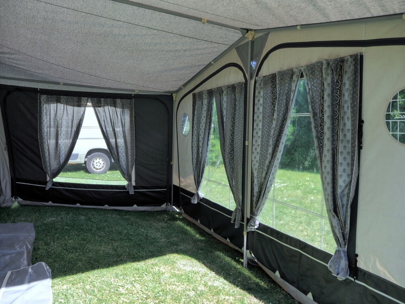 Сплошное вклад в очень хорошее состояние с полной рамой из стекловолокна, набором оригинальных штор, ветряной крышкой для нижней части трейлера, колесного крышки, резиновых струн/напряженности. b>