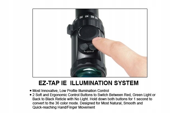 Телескоп оснащен инновационной системой EZ-Tap, позволяющей легко и быстро регулировать/изменять цвет и интенсивность освещения. В в комплект входит сборка из двух частей для рейки Weaver.