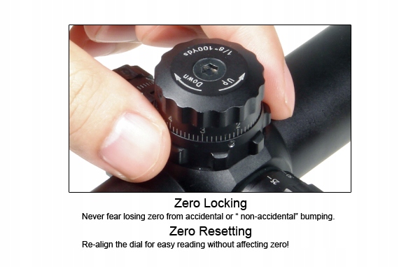 - Перекрестная регулировка: с помощью удобной ручки 1/4 дюйма на расстоянии 100 ярдов.