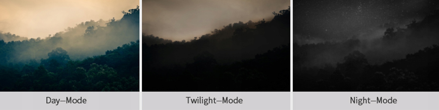 Компания SCD35 разработала три режима изображения: «День/Сумерки/Ночь» для нужд определенного времени суток, используя преимущества производительности датчика и превосходное сочетание аппаратного обеспечения. и программное обеспечение позволяют пользователям видеть цветовое окружение в сумерках.