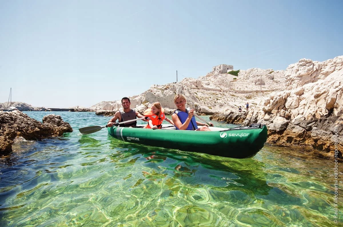 Классический надувный каяк с 2/3 -личностью, сделанный в стандартном, высоком стандарте Sevylor. Сплошное и прочное полиэфирное покрытие, дополнительные швы на внешнем оболочке для увеличения водонепроницаемой и съемной камеры пола со структурой луча для стабильности. Adventure - это просторный спортивный надувной каяк в классической форме каяка с поднятыми боковыми стенами, а также поднятый клюв и кормик, идеально подходящий для посещения побережья, озер или вод в стране в качестве семьи. Благодаря съемному плавнику, легко маневрировать. Высокие боковые стены и широкая форма обеспечивают комфорт, защиту и отличную стабильность сидения, которые регулируются и удаляются.
