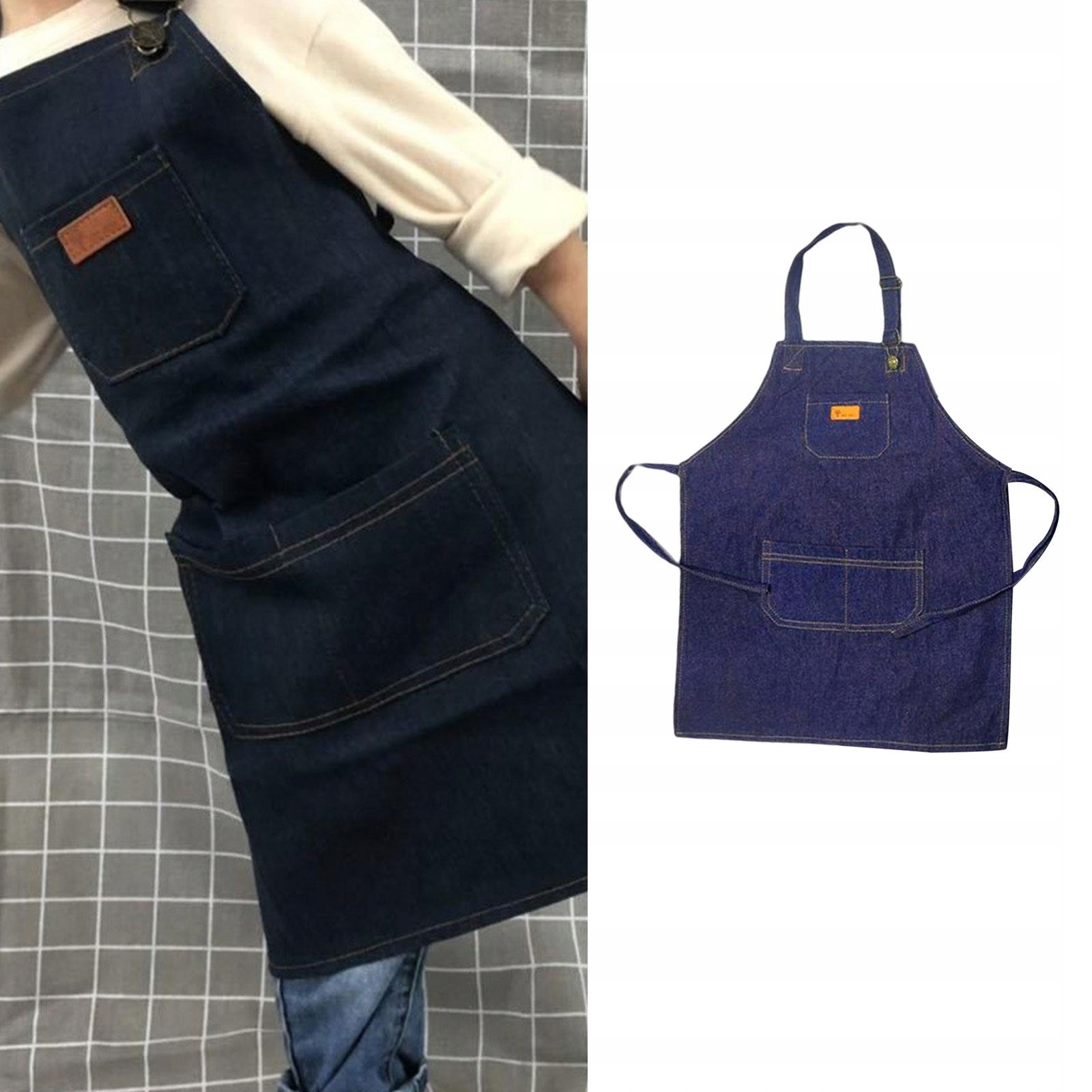 [Материал премиум-класса]: этот кухонный фартук из джинсовой ткани, однотонный, с тщательно прошитой фурнитурной пряжкой, легкий и удобный в носке.
